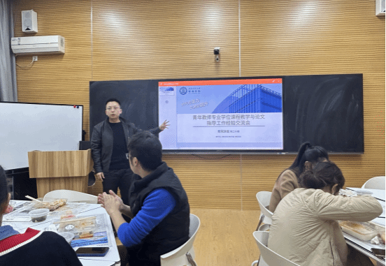 洪兆富、杨倩、封华等多位青年教师分享了自己在专业学位教学和论文指导等方面的工作经验。封华介绍了自己的教学经历,建议要在专业学位教育教学中将理论、案例和实践相结合,同时他也提出要注重引导学生关注论文选题和工作实际之间的关联性。杨倩分享了自己在论文指导工作中所采用的分组管理和过程管理方法,能够有效提高与学生之间的沟通效率以及做好进度管理。洪兆富从学生的选培和时间管理等方面介绍了自己对非全日制专业学位学生的指导思路和工作要求,重点分享了如何引导学生找到合适的选题和发现真正的研究问题的方法和技巧。其他青年教师也都结合自身所遇的问题和大家进行探讨,相互交流学习。此次活动在热烈的氛围中圆满结束。