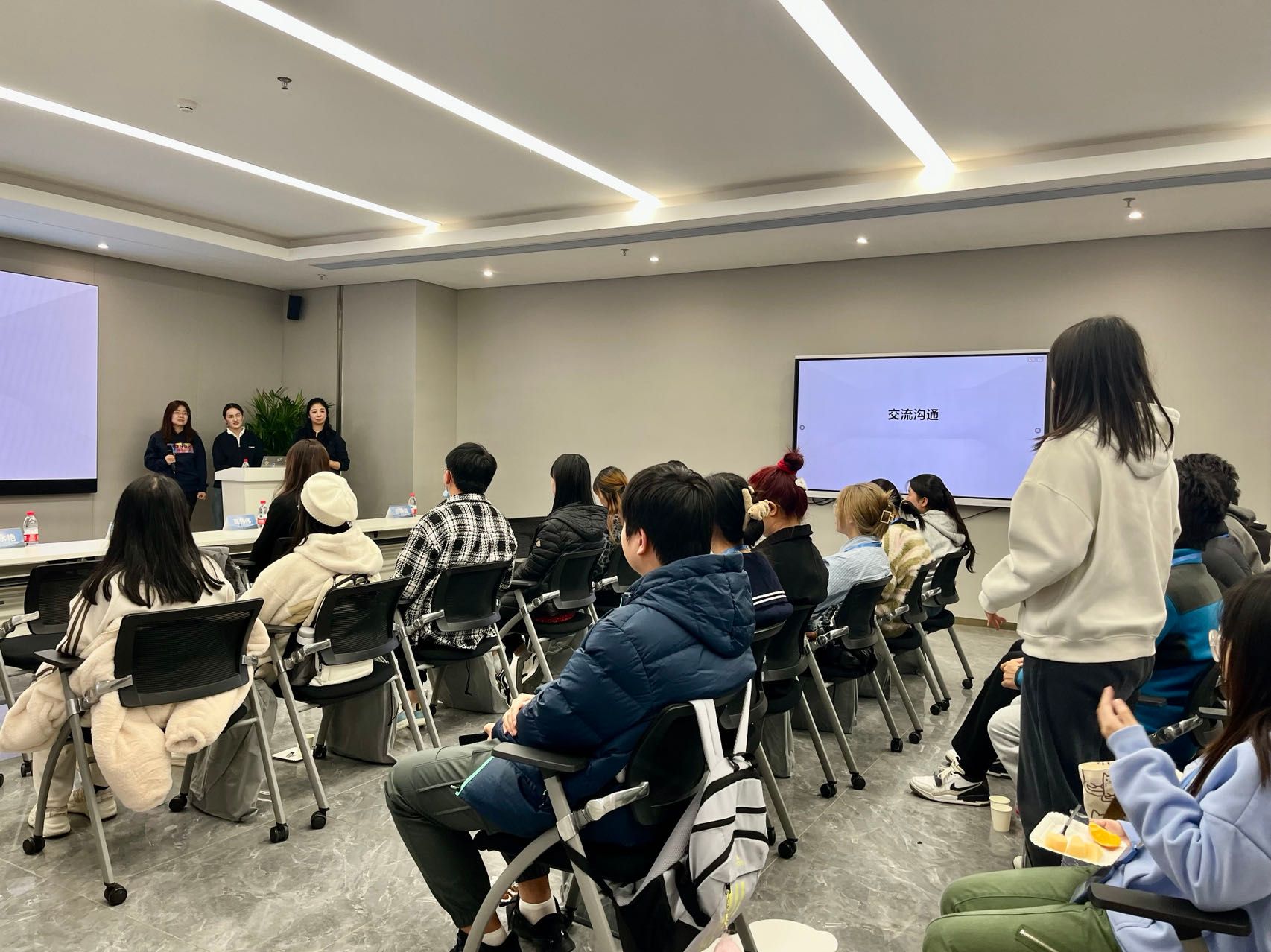 首先,在西安荣耀终端会议室,人事总监卢英对同学们的到来表示热烈欢迎,同时也对当前荣耀的蓬勃发展态势进行了阐述和展望,指出作为全球领先的智能终端提供商,荣耀具有强劲的科技研发实力。同时就荣耀在国际化事业平台、薪酬回报、发展空间、办公环境等多方面的人才吸引力进行了简单介绍。其次财务负责人马永燕也为大家非常全面的介绍了荣耀的财经体系人才观,如经营风险可控、财报的真实性、内外合规等。最后同学们纷纷提出自己的想法和问题:“读研、和工作之间如何进行权衡和选择?”“企业实习实训经历在求职中是必需的吗?” “本科财务毕业生目前就业形式”等等,两位总监也都一一为同学们耐心解答。