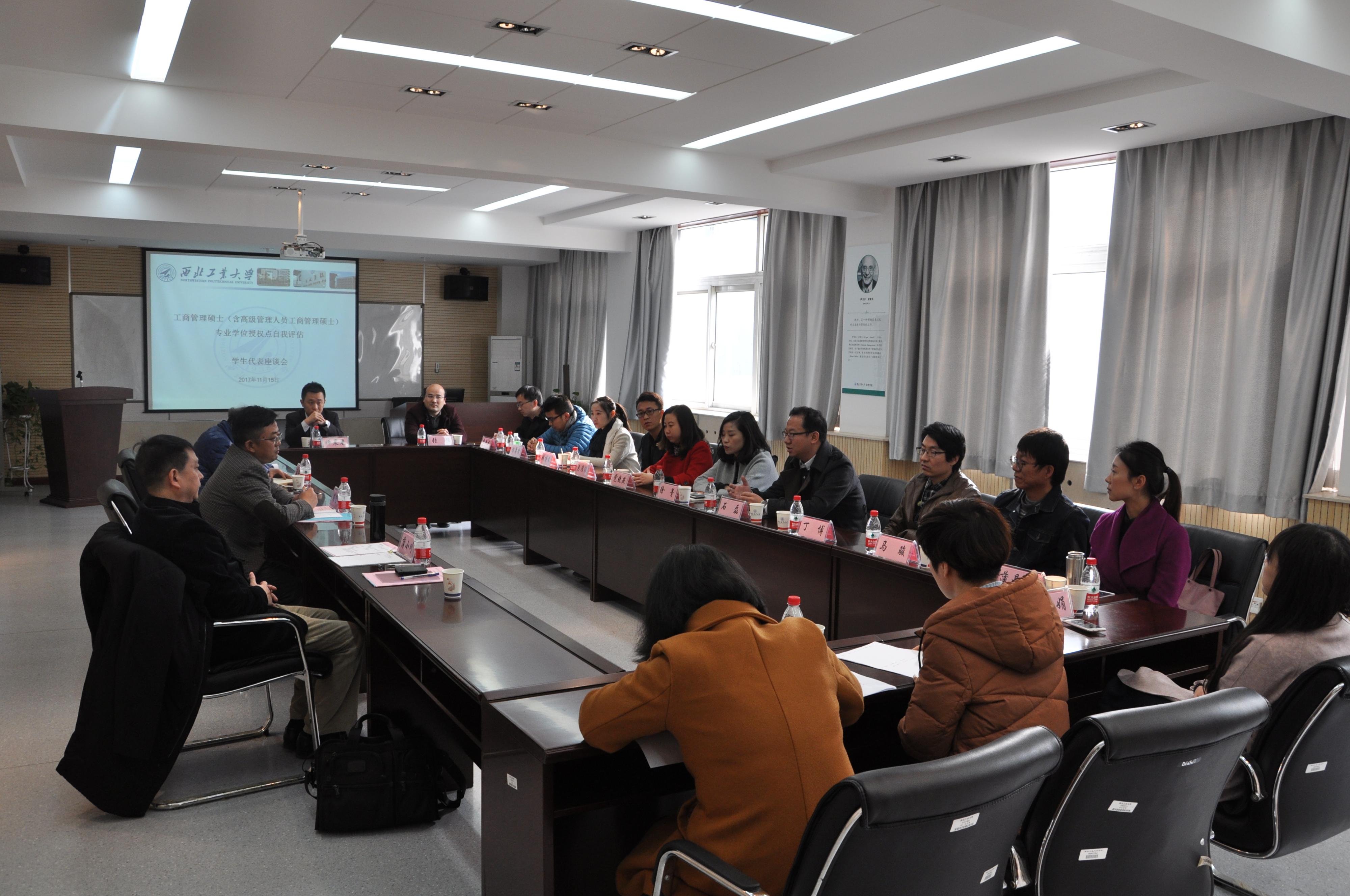 在听取汇报后,评估专家分为两组分别与工商管理硕士(含高级管理人员工商管理硕士)专业学位授权点的教师及管理人员代表、学生代表进行了座谈,并检查了教学档案和教学管理文件、制度汇编等材料。