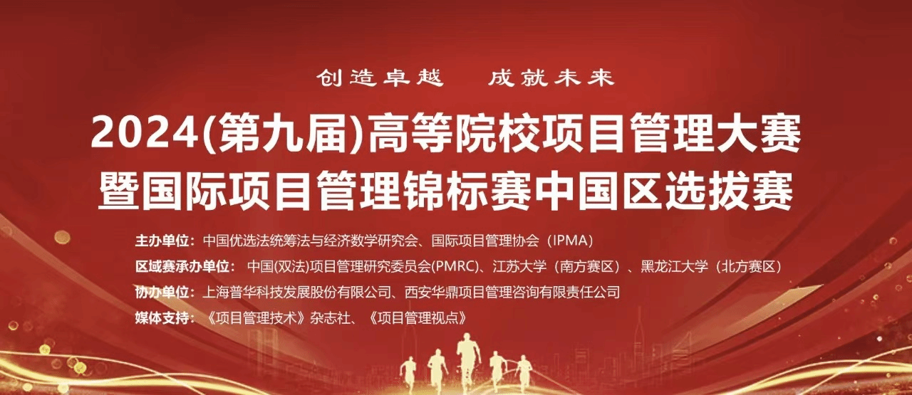 全国高等院校项目管理大赛是著名数学家华罗庚院士创立的中国优选法统筹法与经济数学研究会主办的面向全国高等院校在校学生的项目管理学科创新性竞赛,是目前国内最具影响力并以国际项目管理能力认证标准为导向的项目管理竞赛,同时也是国际项目管理协会主办的“国际项目管理锦标赛(Project Management Championship)”中国区选拔赛,旨在通过项目管理理论知识与软件模拟竞赛活动,激发青年大学生探究项目管理理论、关注项目管理实践的热情,以国际项目管理职业资质标准为导向、注重个人综合素质的提升和能力培养,搭建起青年大学生项目管理专业交流的平台和建立友谊的桥梁,为成就未来项目管理精英发挥积极作用。
