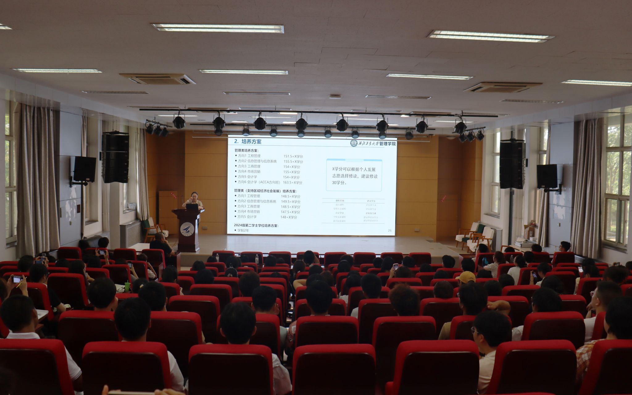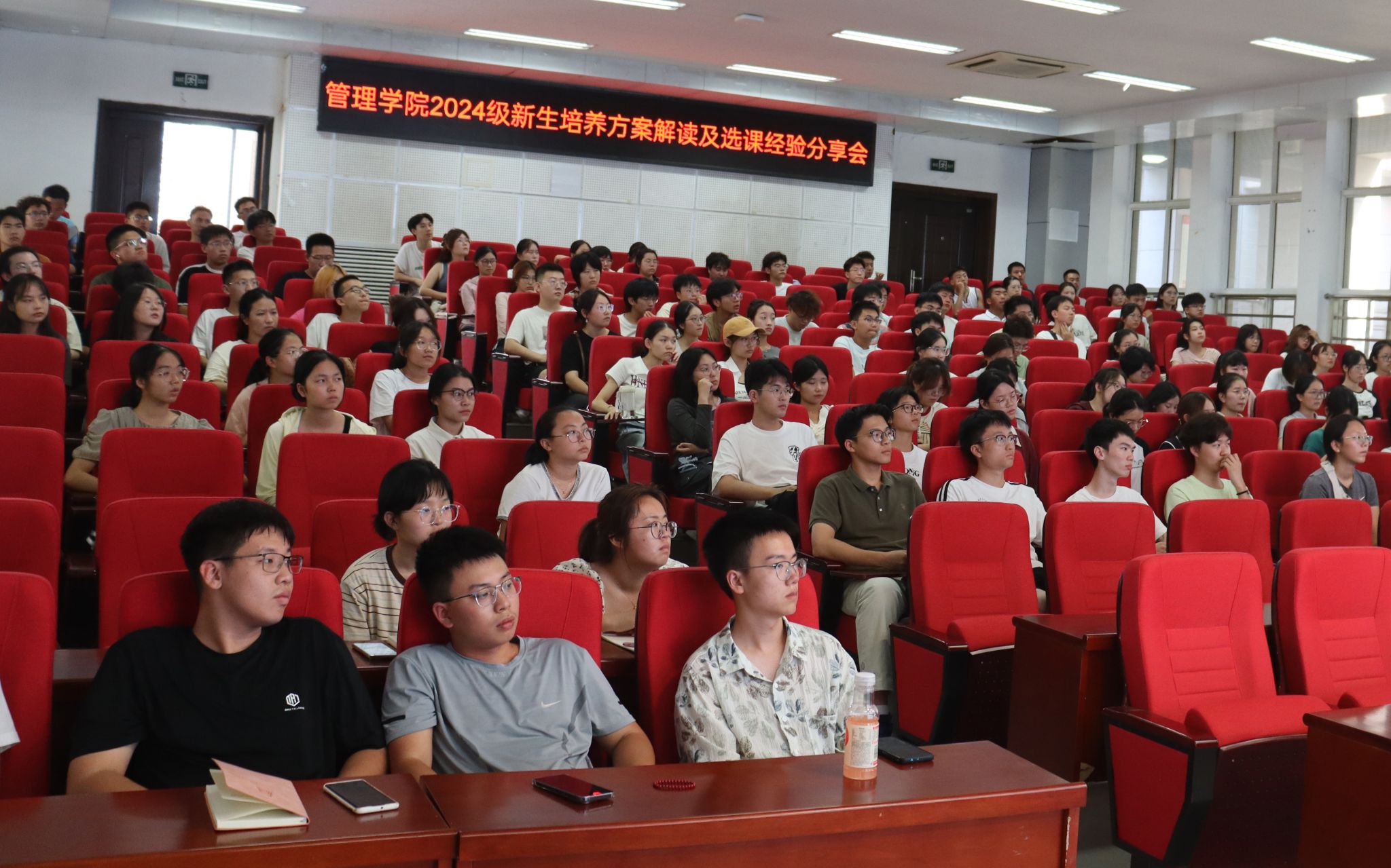 本科生培养计划的总体架构,包括学制规划、课程培养目标等关键要素,深入解读了培养计划中的各类课程体系设置,让新生对即将学习的课程有初步了解。她建议新生们要精心策划个人的选课路径,注重理论学习与实践探索的平衡,以实现个人能力的全面提升。三名高年级同学结合自身经历,与新生们分享了选课策略与心得。