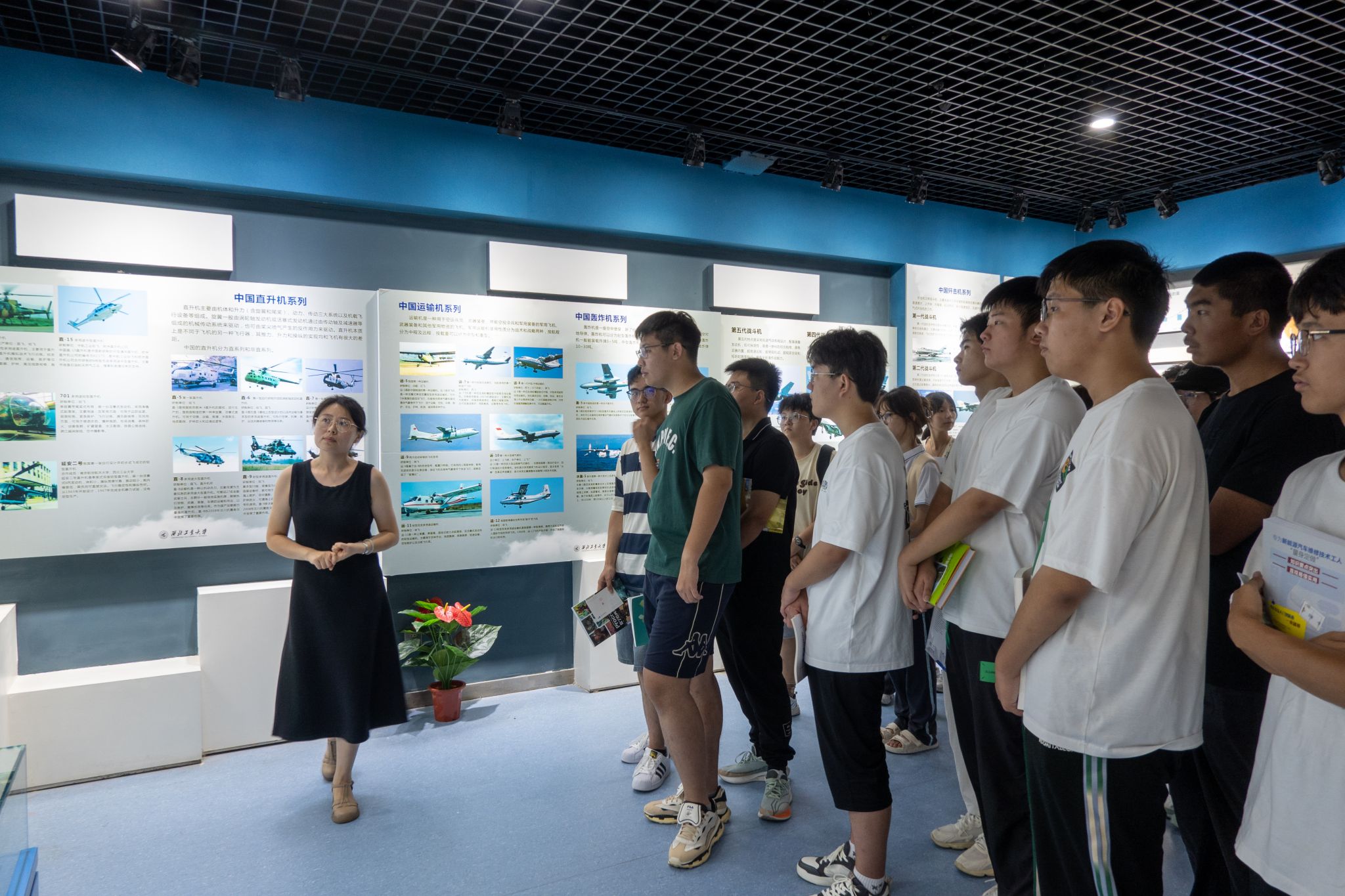 博物馆的探访之旅。在博物馆室外展场,同学们近距离接触了直5、轰6-A、歼8等多型号飞机,这些珍贵展品仿佛诉说着过往的辉煌与艰辛。在艺术馆内,多幅展现飞机雄姿的杰出油画也深深吸引了同学们的目光,这些画作以其独特的艺术魅力,将飞机的风采与力量展现得淋漓尽致。在参观过程中,同学们深刻体会到了学校深厚的文化底蕴以及那份融于血脉中的硬核浪漫情怀。
