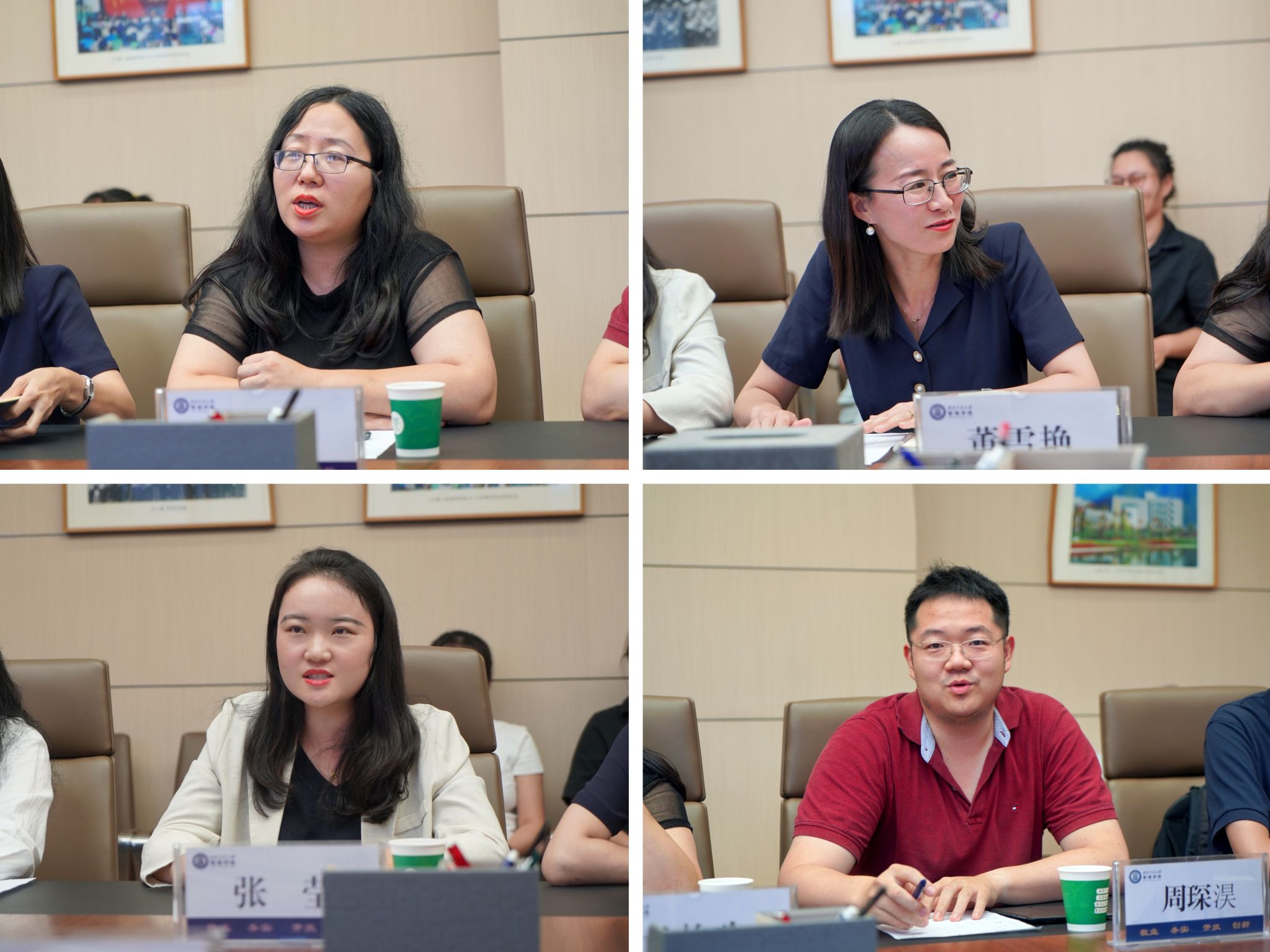 5名新入职的青年教师代表依次做自我介绍,共同交流求学经历与入职以来的成长收获,分享了未来工作的期待和计划,并立足当前岗位,就如何保持创新意识、学习姿态,以奉献教师“小我”书写强国“大我”,做一名“四有”好老师表达了自己的决心和信心。