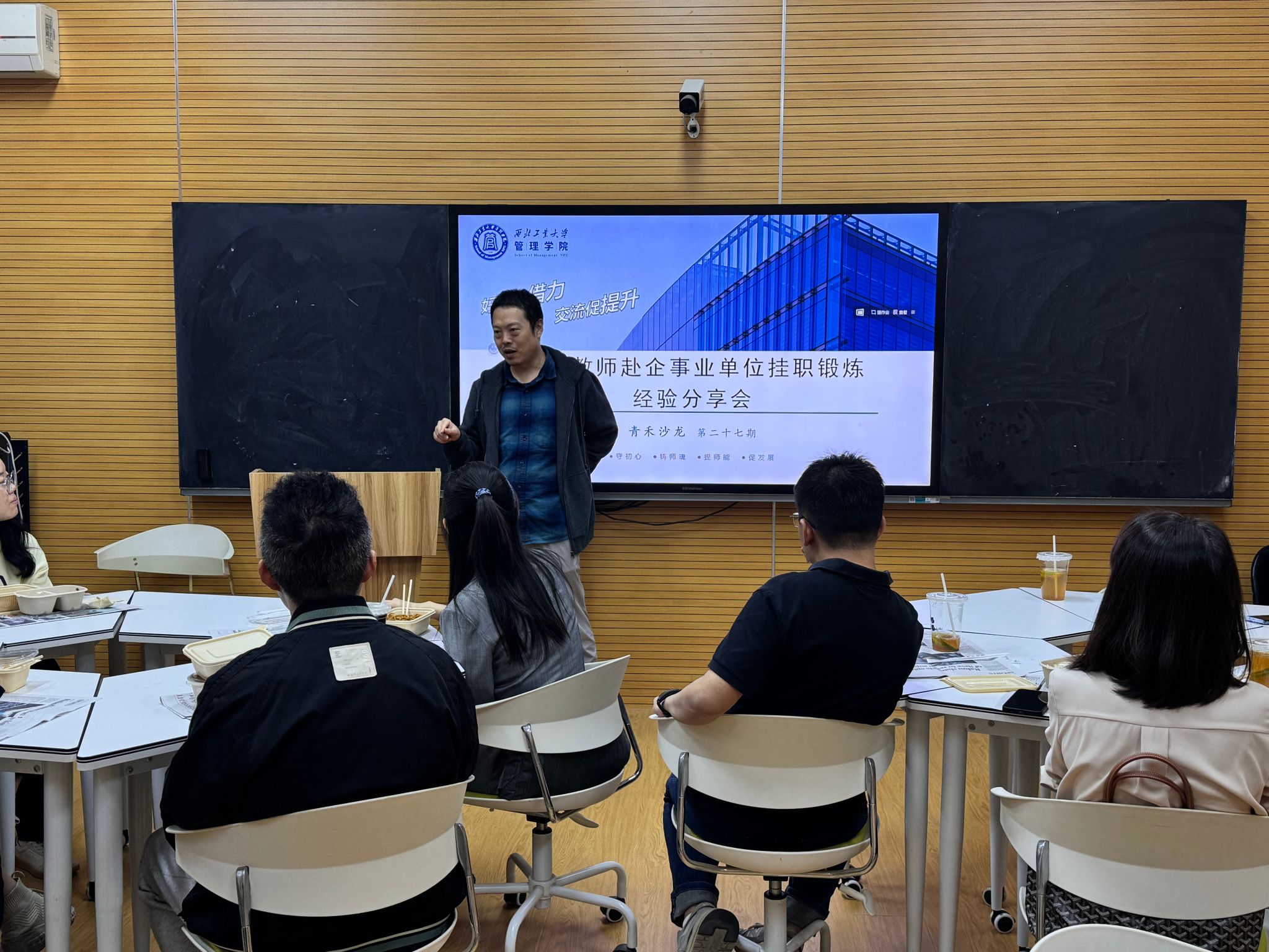 杨倩回顾了她在秦创原创新促进中心担任发展规划部副部长的工作经历,分享了她通过参与挂职单位的基础工作,深入了解企业需求,提炼最新企业实践经验与模式,推荐学生参与实地项目,拓宽产学研合作等方面的体会、经验和成果。杨倩将挂职过程中发现的问题转化为研究问题和管理案例,促进了科教创新、人才培养和产业发展的有机衔接。在其挂职期间,深入企业自主开发了4篇企业实践案例,其中3篇获得“全国百篇优秀管理案例”,在省科技厅内参刊物《秦创原战略研究》发表1篇秦创原建设咨政建议,并以“提升秦创原辐射带动力研究”获批省软科学项目。