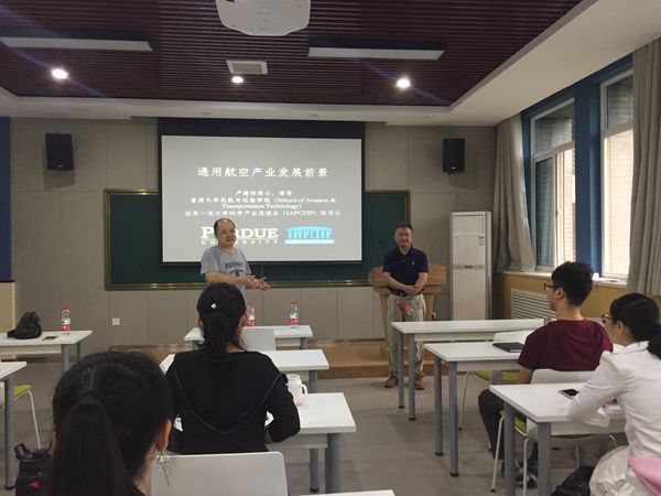 汇报过程中,卢教授不仅展示了许多与通用航空相关的图片与影片,还给同学们举了许多生动的案例,譬如普渡大学以通用航空的小型飞机代替陆地交通工具为该校教师提供中短途的上班、开会等公务出行活动。