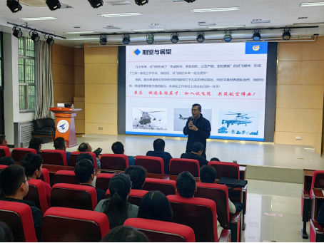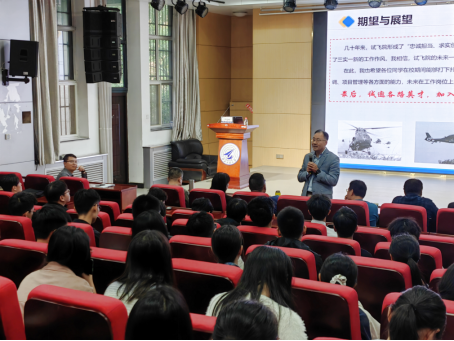 报告会上,尹建峰介绍了飞行试验的基本概念和国内外试飞机构的发展历程,详细讲解了试飞员与试飞工程师的角色和职责。他结合试飞员与试飞工程师所需具备的核心价值,深情回顾了自己的求学生涯,展望了“总师型”人才培养的发展愿景,鼓励同学们要紧跟学校发展步伐,打好未来发展的基础。
