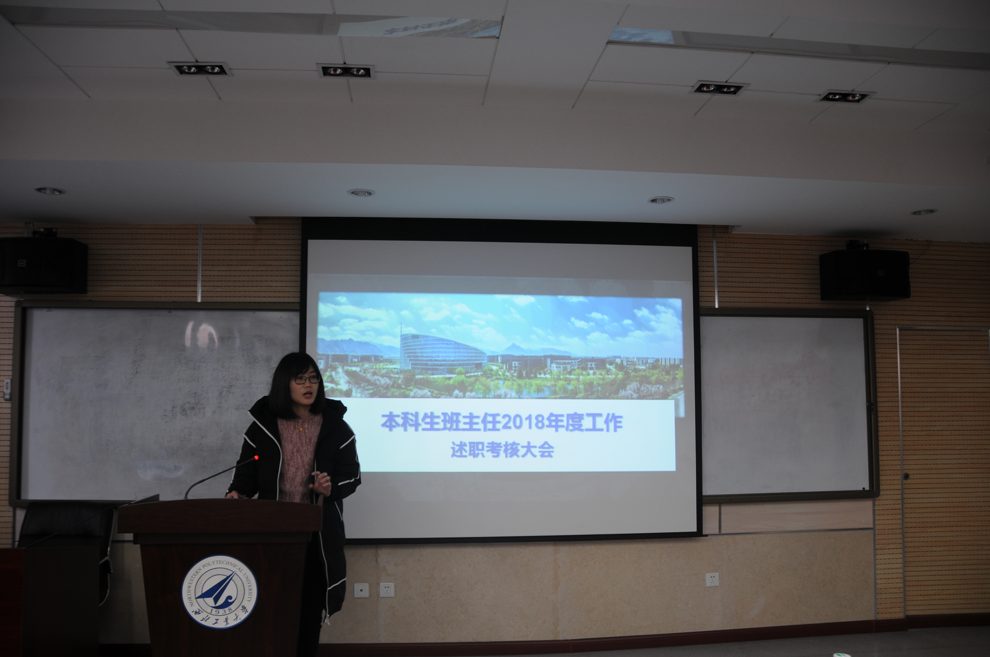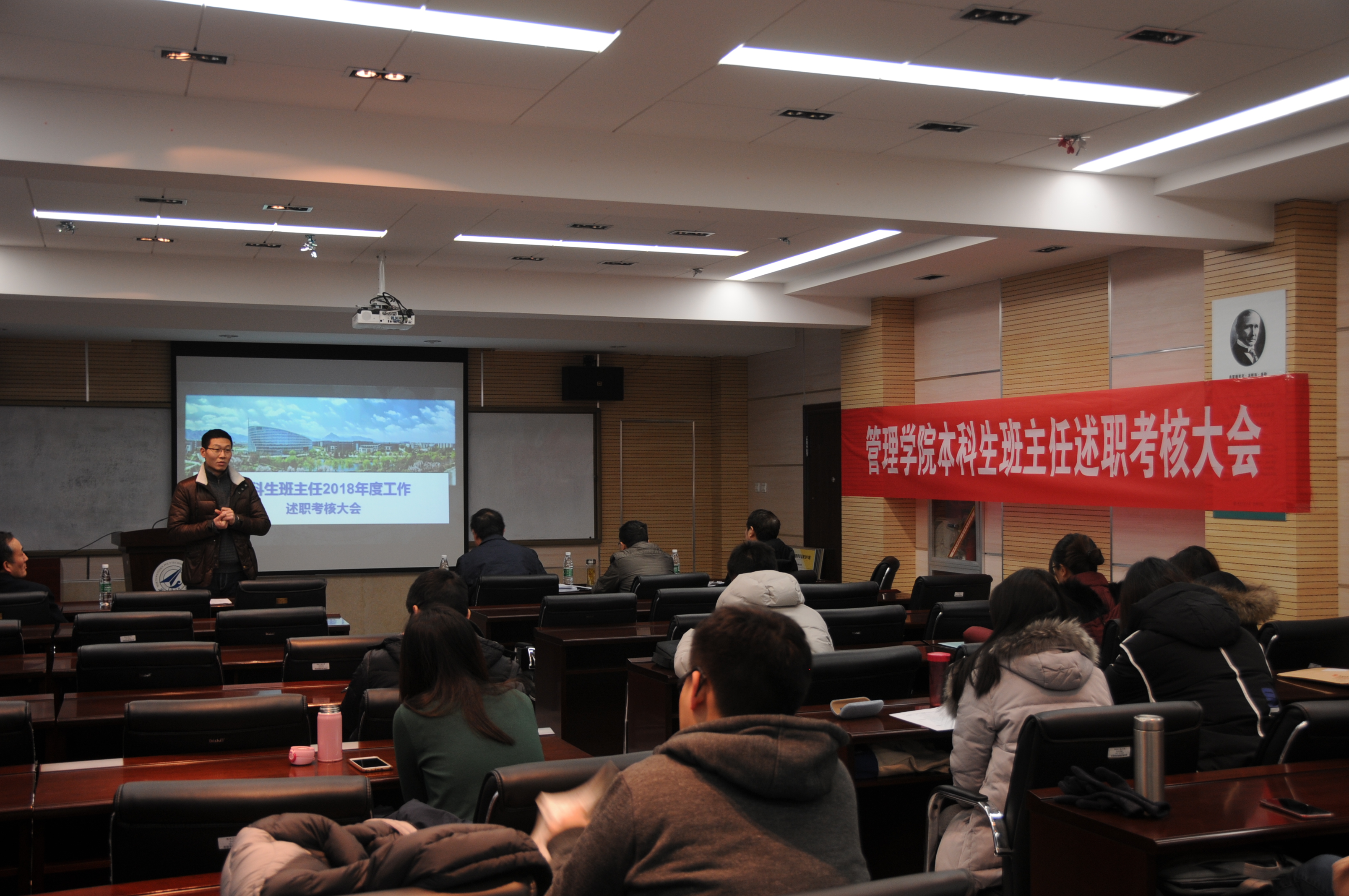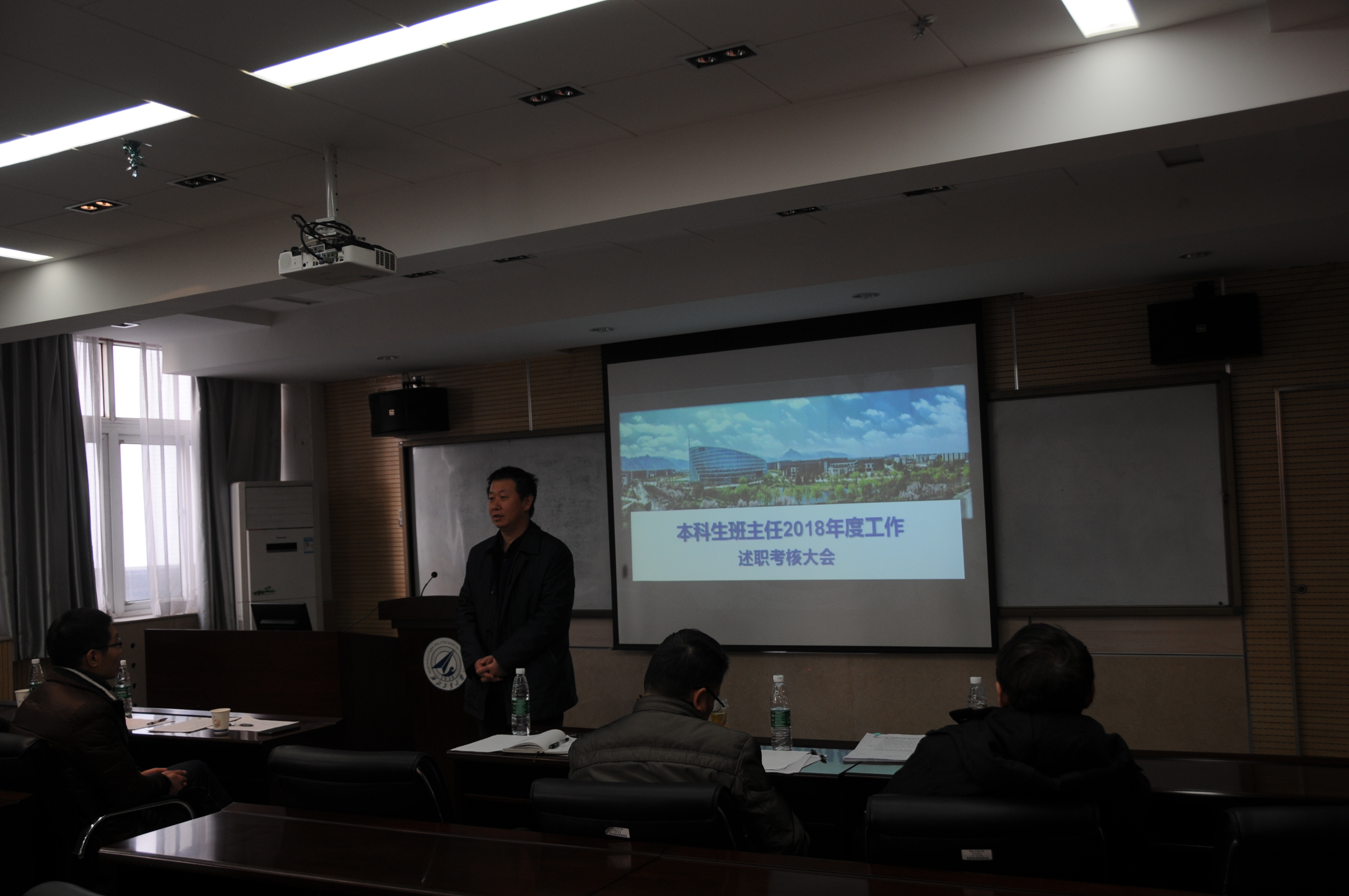 在友谊校区学院楼403会议室举行本科生班主任2018年度工作述职考核大会,学院领导以及本科教学督导组的老师作为考核小组成员参加了此次大会。会议由学院党委副书记曹子尧主持。