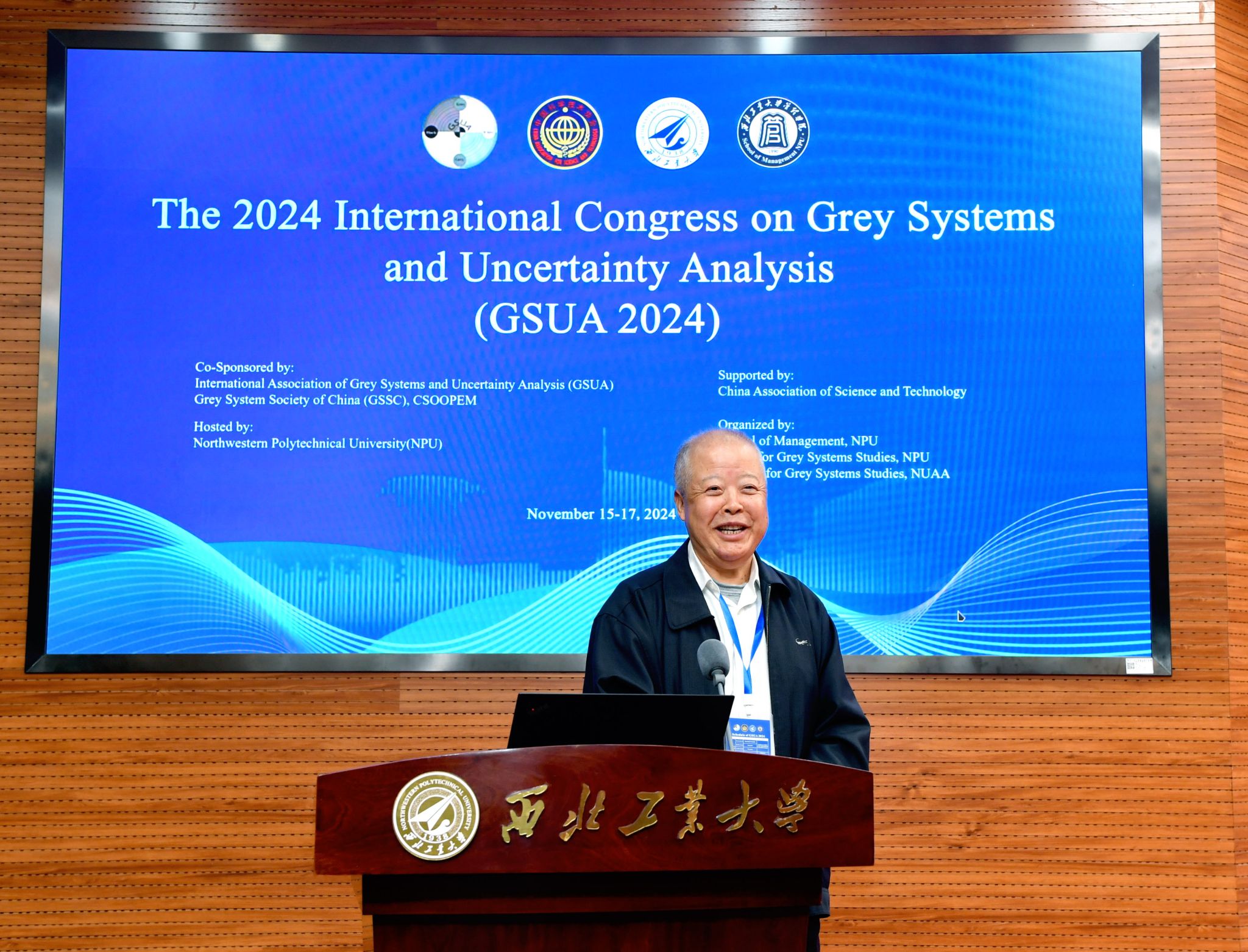 教授、灰色系统与不确定性分析国际联合会主席刘思峰在致辞中回顾了灰色系统理论40多年的发展历程,对创始人邓聚龙的贡献表示崇高的敬意,并对中国优选法统筹法与经济数学研究会灰色系统专业委员会、GSUA国际联合会同仁和国内外相关出版机构为灰色系统理论创新、发展和传播所做出的重要贡献表示感谢。
