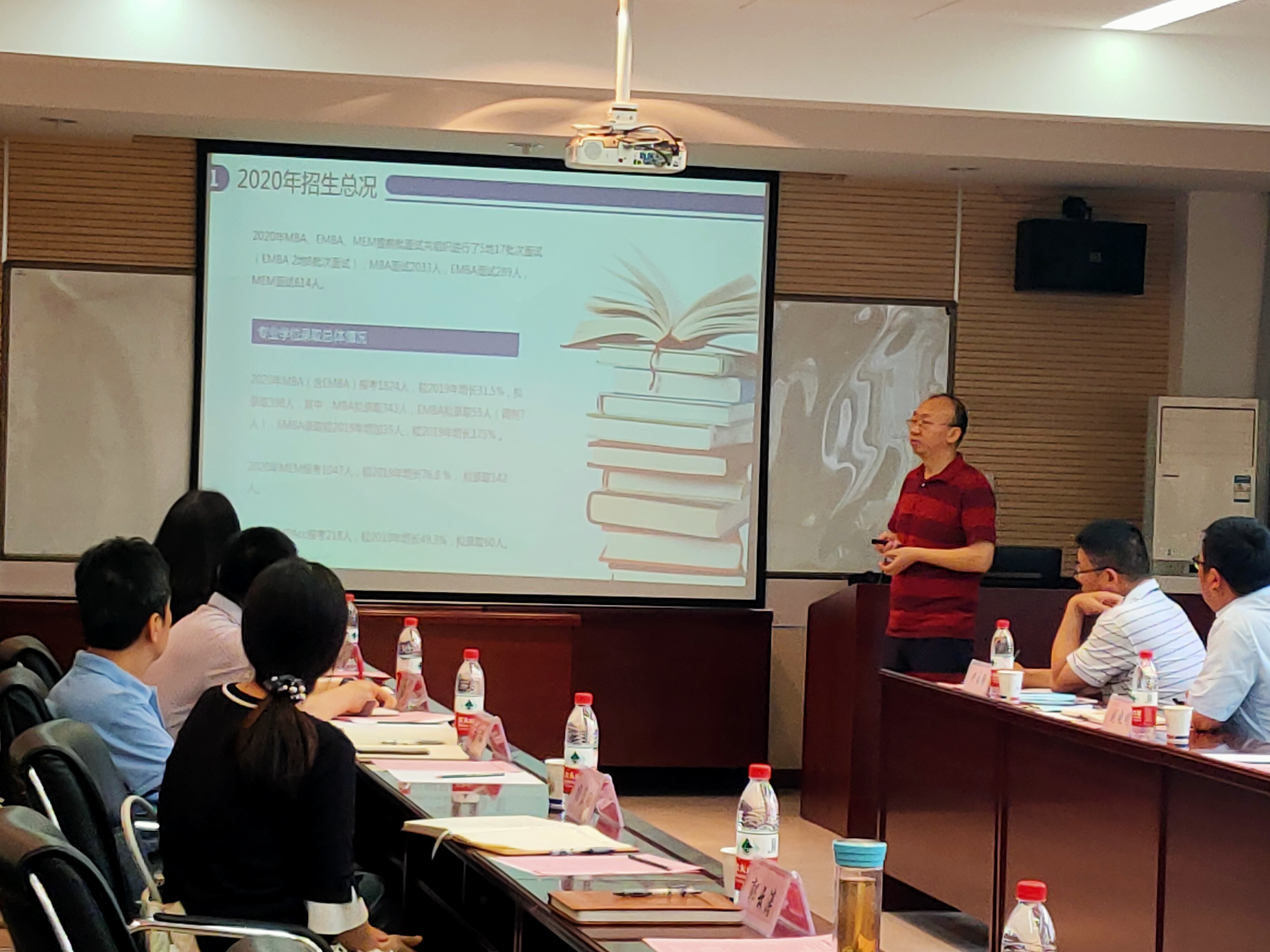 2020年的生源质量等比往年都有所提高。随后,他介绍了2021年学院专业学位招生工作的计划及2021年MBA(含EMBA)和MEM优秀学员选拔面试政策。