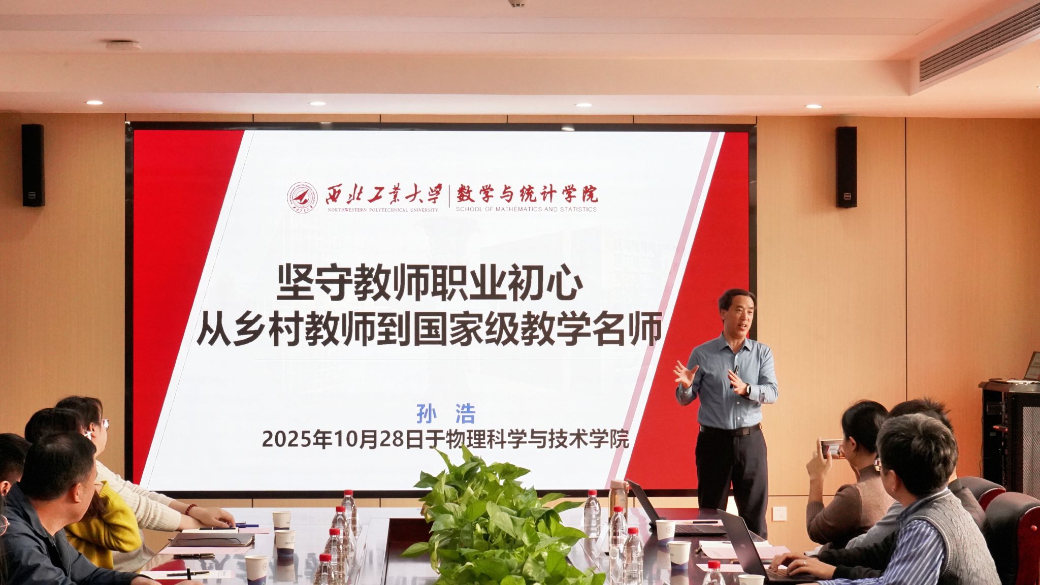 为深入学习贯彻习近平总书记关于教师队伍建设的重要论述,大力弘扬教育家精神,10月28日下午,acg漫画 和物理科学与技术学院在长安校区开展师德师风专题报告会,数学与统计学院国家级教学名师孙浩教授应邀作专题报告。此次报告也是acg漫画 “青禾沙龙”系列活动之一。物理科学与技术学院党委书记晁小荣、acg漫画 党委副书记王海啸、院长助理李乘龙,以及两院党支部书记、青年教师和院办教职工参加。报告会由晁小荣主持。