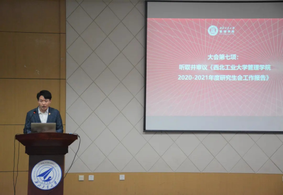 2020-2021学年研究生会主席团成员杨帆同学进行了研究生会工作报告。上学年研究生会主要工作回顾——研究生会不断创新工作模式,关注学生权益与发展,改善学生生活,顺利完成了所有工作计划,并取得了显著成效,部门分工合理有序。研究生会未来的工作展望——提升综合服务能力;发挥每个部门、每个成员的优势;完善改革制度;走进学生,增强服务。