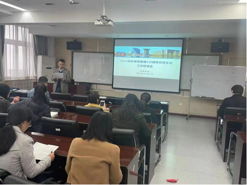 召开2021年秋季学期第一次辅导员班主任工作联席会。学院党委书记乔彩燕、副书记樊琳,辅导员封华、王娟、那依力,本科生教学秘书张雪谧以及全体班主任参加会议。会议由樊琳主持。