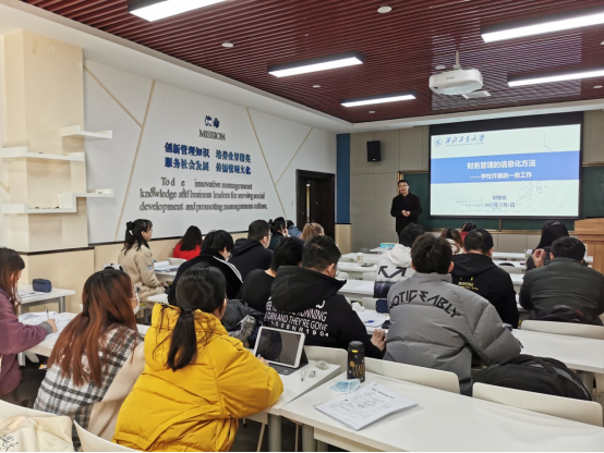 其次,张鹏老师介绍了财务管理的信息化方法。他从学校的历史渊源讲起,讲解了学校在“航空、航天、航海”领域人才培养和科学研究取得的成就。然后以acg漫画