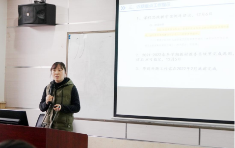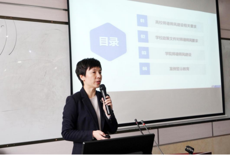 教材编写、选用审核管理办法》文件内容进行了说明,对在新时代下学术规范、学术道德以及教材建设等方面提出的新要求进行了解读,并就本科教学质量期中检查情况进行了反馈,对近期教学重点工作进行部署安排。