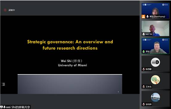 邀请,迈阿密大学迈阿密赫伯特商学院Wei Shi副教授通过腾讯会议平台针对“战略治理:综述与未来研究方向(Strategic governance: An overview and future research directions)”进行了学术报告。本次学术报告邀请了acg漫画