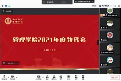 线上召开2021年度教代会暨全院教职工大会。会议分两部分进行,一是由工会主席蔡建峰主持2021年度教职工代表大会;二是由学院党委书记乔彩燕主持2022年寒假全院教职工大会,学院全体教职工参加了此次会议。