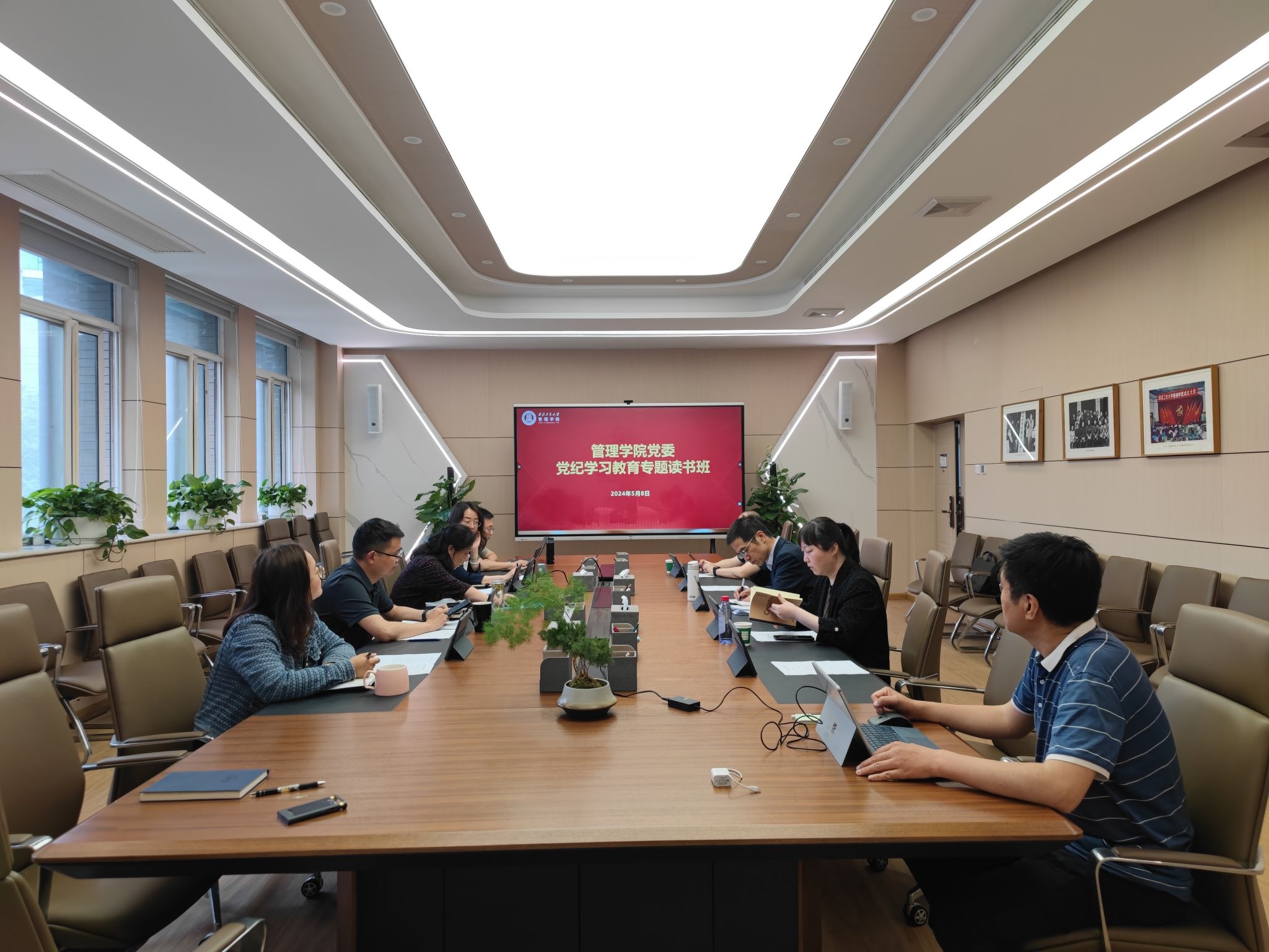 5月8日,acg漫画 党委举行党纪学习教育第一期读书班暨党委理论学习中心组学习会,深入学习习近平总书记关于加强党的纪律建设的重要论述和《中国共产党纪律处分条例》,引导党员干部学纪知纪明纪守纪,推动党纪学习教育走深走实。学院领导班子、中心组成员参加会议,学院党委书记张爽主持会议。