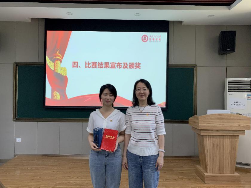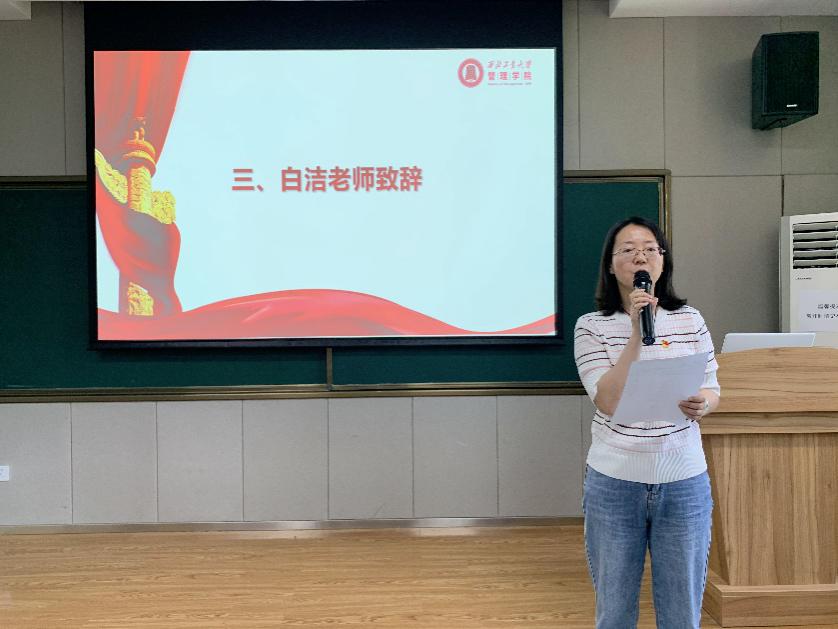 选手们演讲完之后,白洁老师对本次活动进行总结。做为新时代的青年党员学子,在建党百年关键节点,通过自己的视角,讲述百年党史中一张照片背后的党史故事,是一件很有意义的事情。本次活动紧紧围绕建党百年为主题,各位选手视角各具特色,故事内容丰富详实,宋振中等红色人物、红船精神等红色精神、《志愿军战歌》等红色歌曲、渣子洞中的五星红旗、《悬崖之上》等红色影视无一不扣动在场各位的心弦。白洁老师希望同学们将学习党史做为一种自觉和习惯,学史明理、学史增信、学史崇德、学史力行,将学习党史的思考和力量,转化为实际行动,勇担时代责任和历史使命,为实现中华民族伟大复兴的中国梦而努力奋斗。
