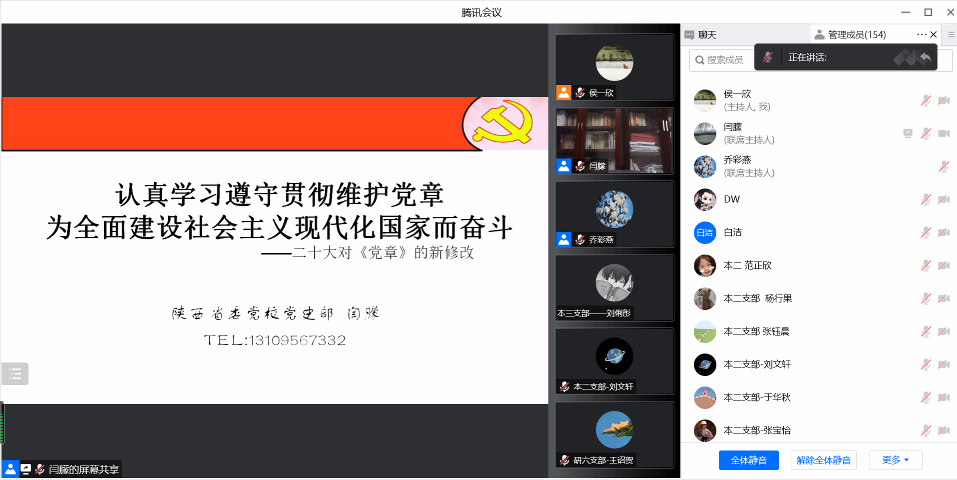 “学习宣传贯彻党的二十大精神”专家辅导报告迎来第三讲,邀请陕西省委党校闫朦教授对《中国共产党章程(修正案)》进行解读。学院全体师生党员线上聆听学习,报告由学院党委书记乔彩燕主持。