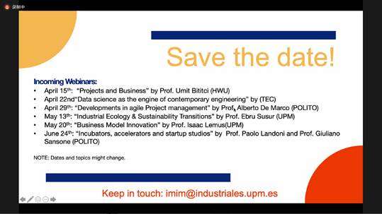 2021年3月25日晚,acg漫画 协同西班牙马德里理工大学共同举办欧盟伊拉斯谟IMIM工业管理国际硕士联合培养项目系列宣讲会。这是IMIM工业管理国际硕士联合培养项目系列宣讲会的第二讲,第一讲已于3月18日晚进行。本次宣讲会由来自西班牙马德里理工大学的Isaac Lemus-Aguilar教授主持。
