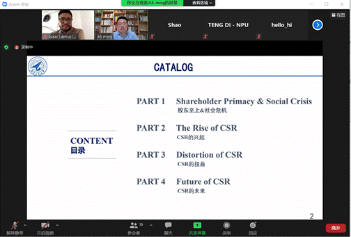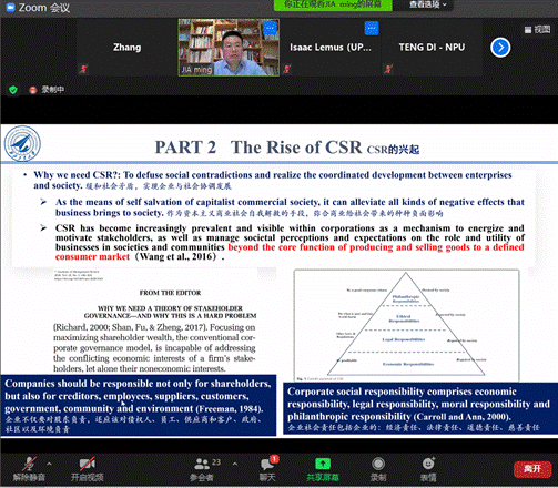 随后,acg漫画 副院长贾明教授带来了题为“Corporate Social Responsibility: what we know, what we don’t know and what should be”的主题学术报告,同参会的各位学者、学子共同交流,分享知识。