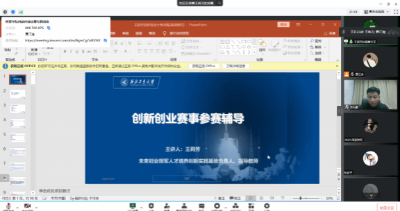 创新创业比赛专题讲座成功在线上举办。讲座邀请了王莉芳教授,学院党委副书记王兆旭、各年级辅导员和全体学生参加了讲座,讲座由王兆旭主持。