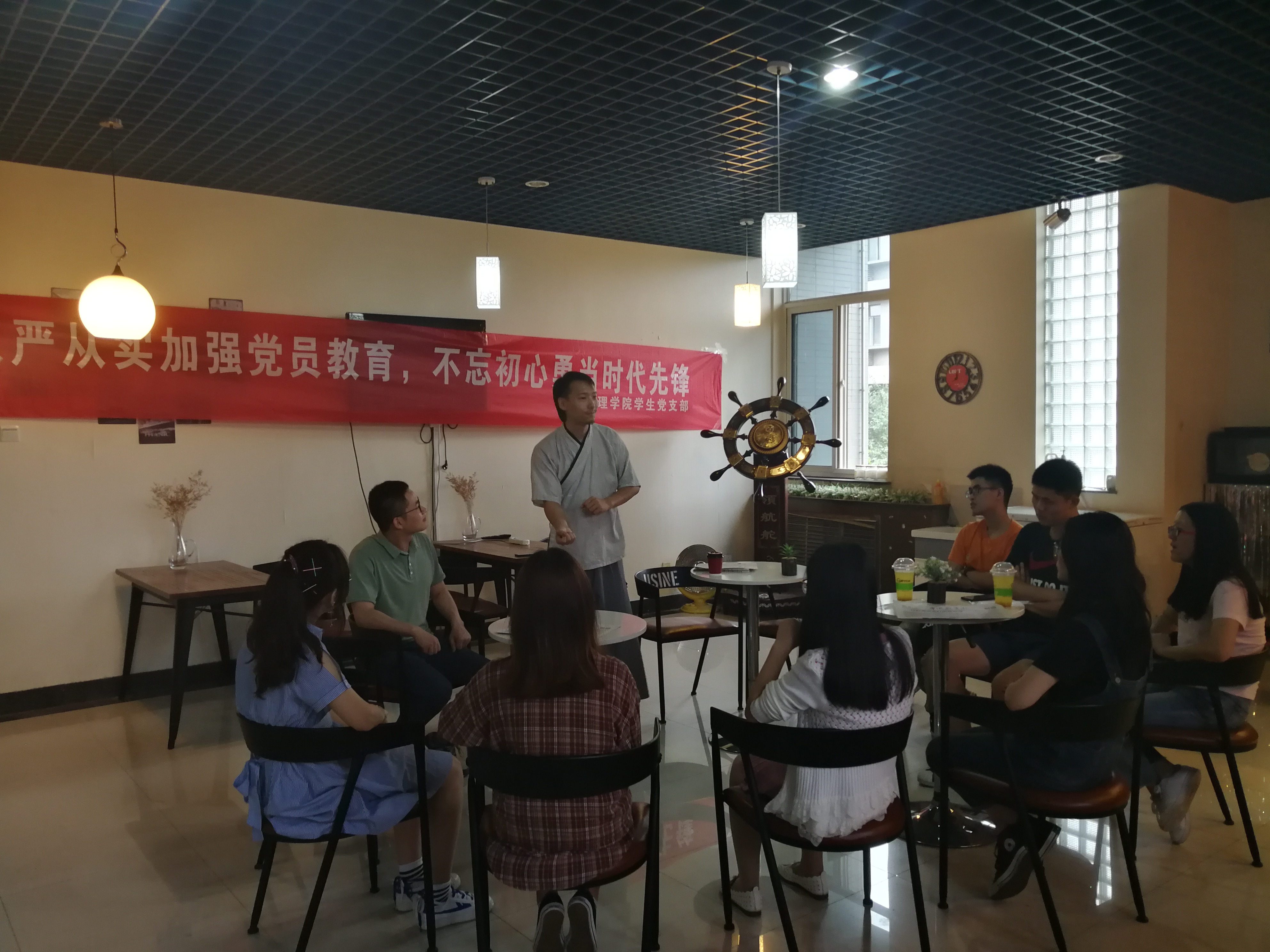 最后,高朝晖同志与其他参会党员探讨了国学智慧与大学院校党建文化融合面相关问题的解决办法,如:定期聘请国学专家、学者到校进行讲座。每年开展“三个一”活动: 读一部国学经典,记一本国学笔记,听一场国学讲座。对国学类党建科研项目进行鼓励,给予政策的支持。讨论异常精彩。然时光飞逝,犹“随风潜入夜,润物细无声”般的到了本次会议高朝晖同志该跟大家说再见的时候,通过传播经典,感受经典,在经典的浸润之下提升学生党员个人内在修养和境界,是一个循序渐进、潜移默化的过程,需要持之以恒、磨砺心性。如何发挥国学经典的导向功能,探索传统文化与学生党员培养教育相融合的体系,是一项长期而艰巨的工程,需要高校党建工作者多方面的共同努力。