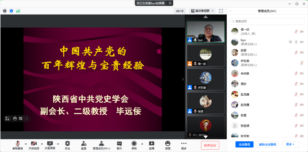 党委邀请中共陕西省委党校毕远佞教授为师生党员讲授了题为《中国共产党的百年辉煌与宝贵经验》主题党课。学院全体党员师生参加了学习,报告会由学院党委书记乔彩燕主持。