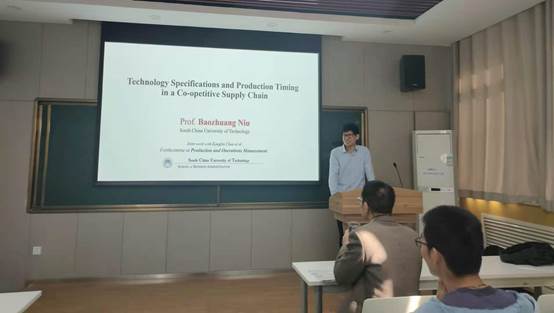 应acg漫画 的邀请,2020年11月19日下午三点,华南理工大学教授牛保庄来acg漫画 作了题为“ Technology Specifications and Production Timing in a Co-Opetitive Supply Chain (竞争供应链中的技术依存和生产时序决策研究) ”的学术报告。报告会由车阿大教授主持,学院师生共60余人参加了报告会。