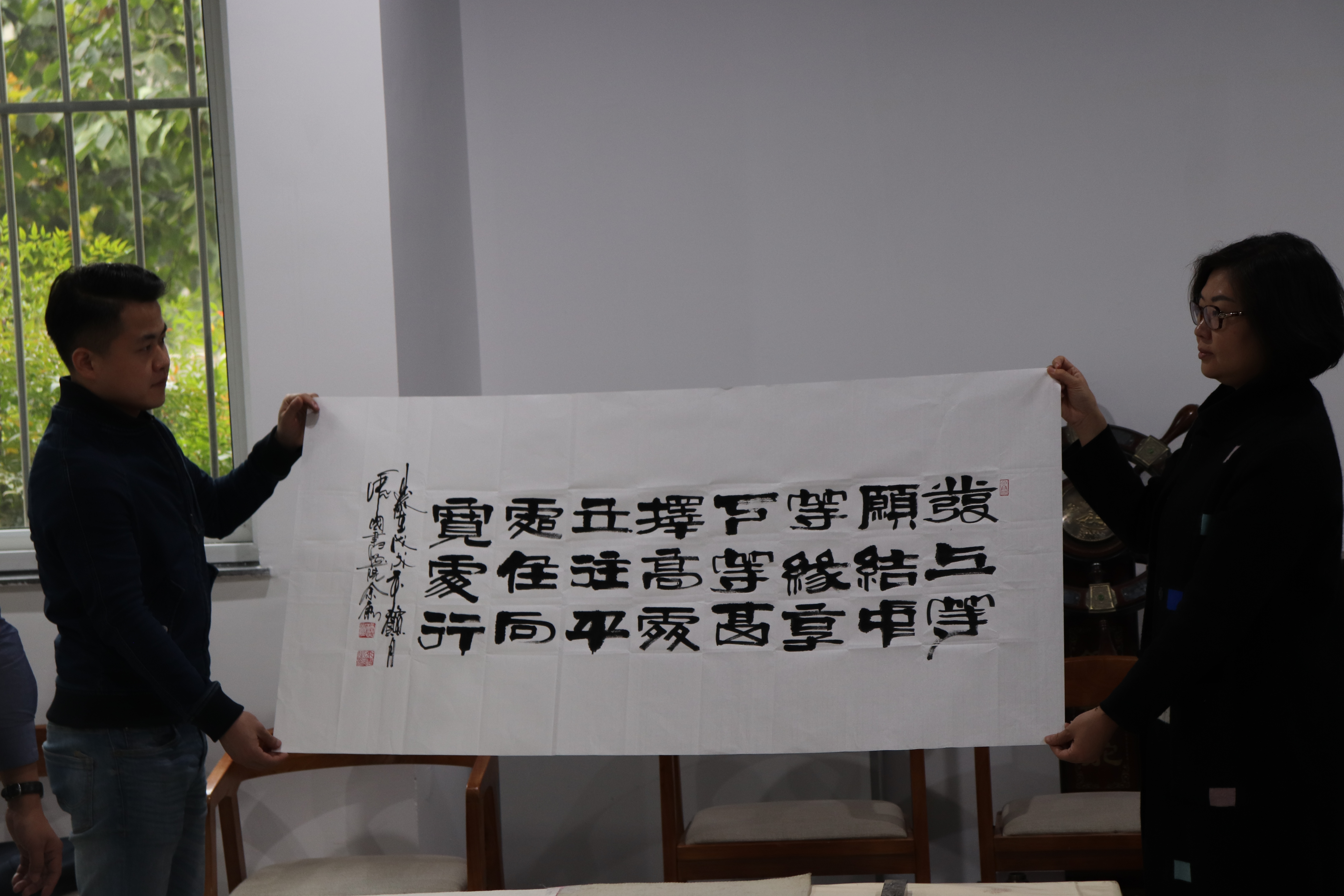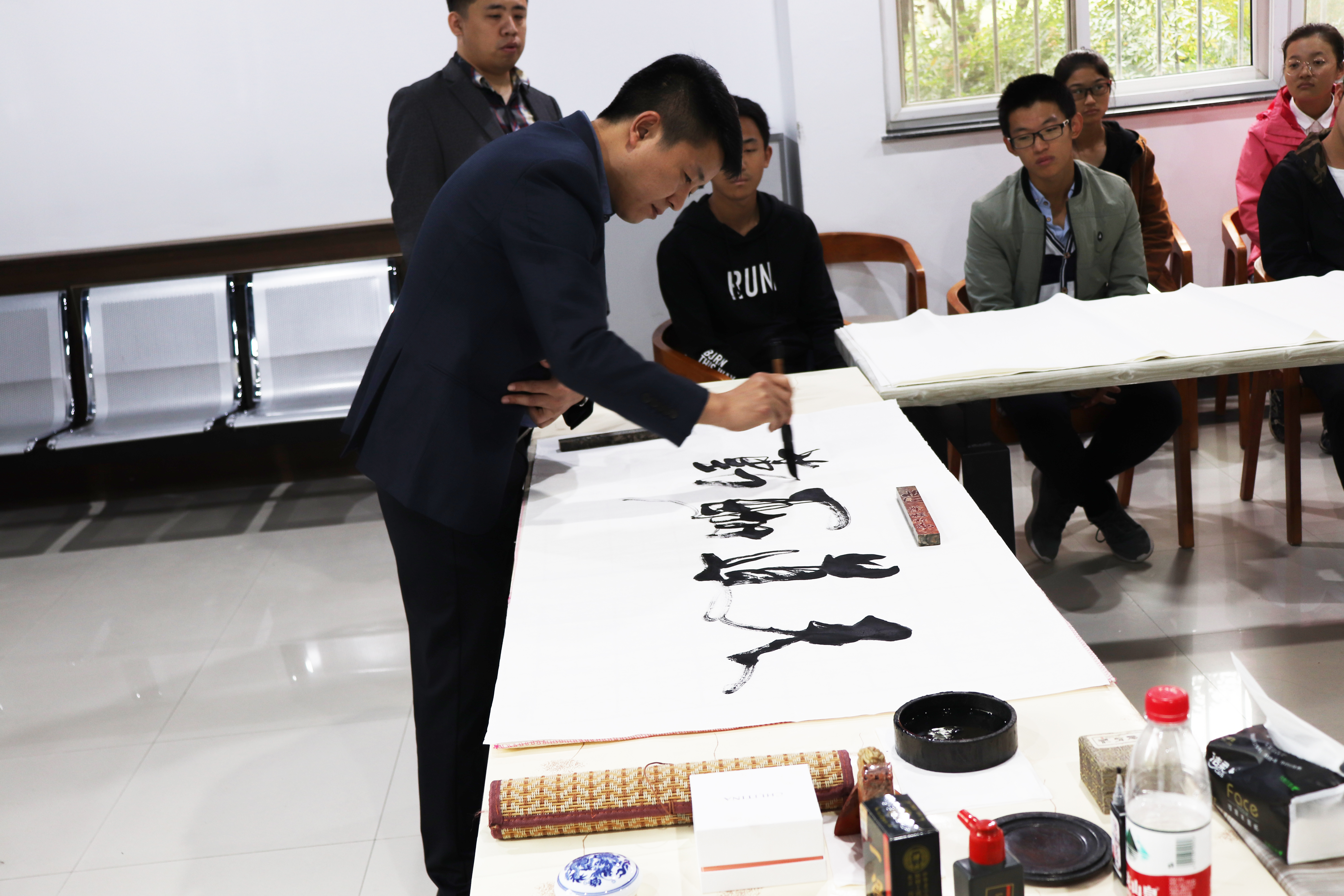 接下来,同学们也纷纷响应,积极参与其中。在看过学生们作品后,余康校友向大家提出了一些中肯意见,如:写书法时要先谋篇布局,不能急于下笔;落款要注意格式;书法是万不可以离开字的;书法是雅俗共赏的,不是用来体现高深的等。