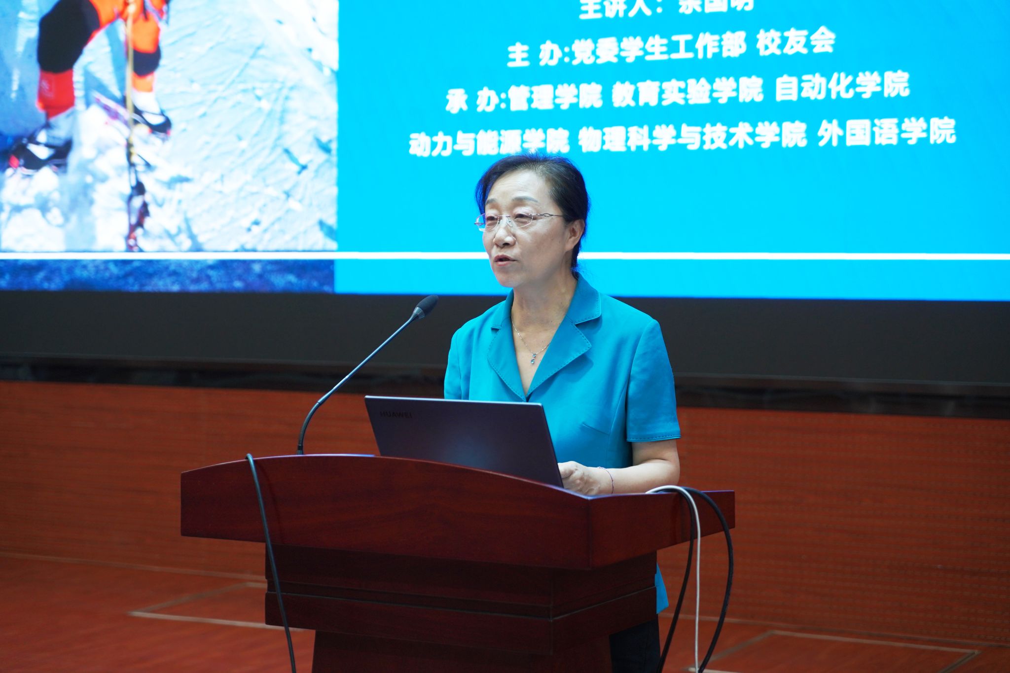 学生代表简要分享了攀登珠峰的艰难历程,从准备训练到登顶的每一个挑战,都充满了对攀登事业的热爱和执着。何静简要分享了无氧登顶珠峰的经历,讲述了自己在极端环境下如何保持冷静、如何克服身体和心理的极限。