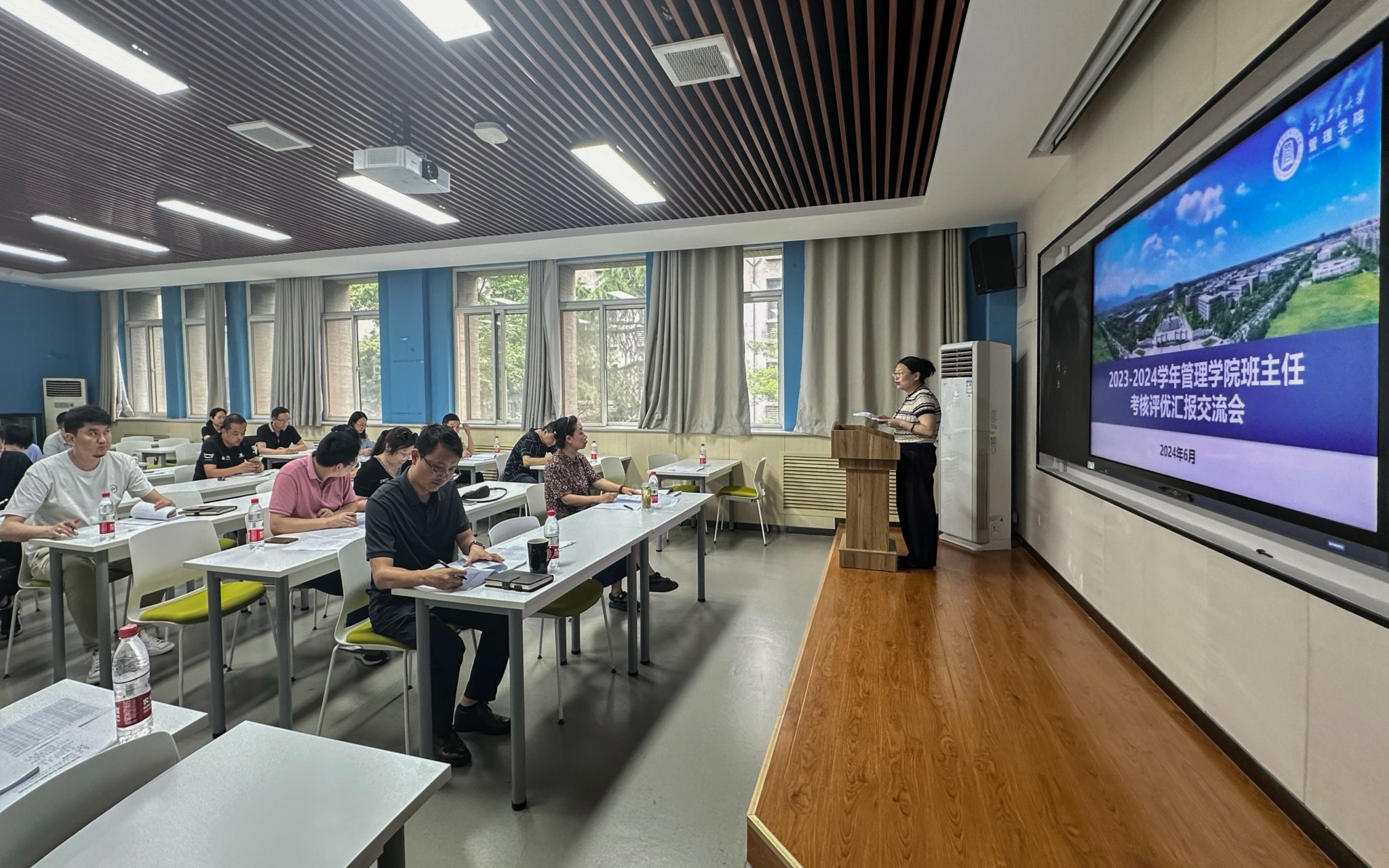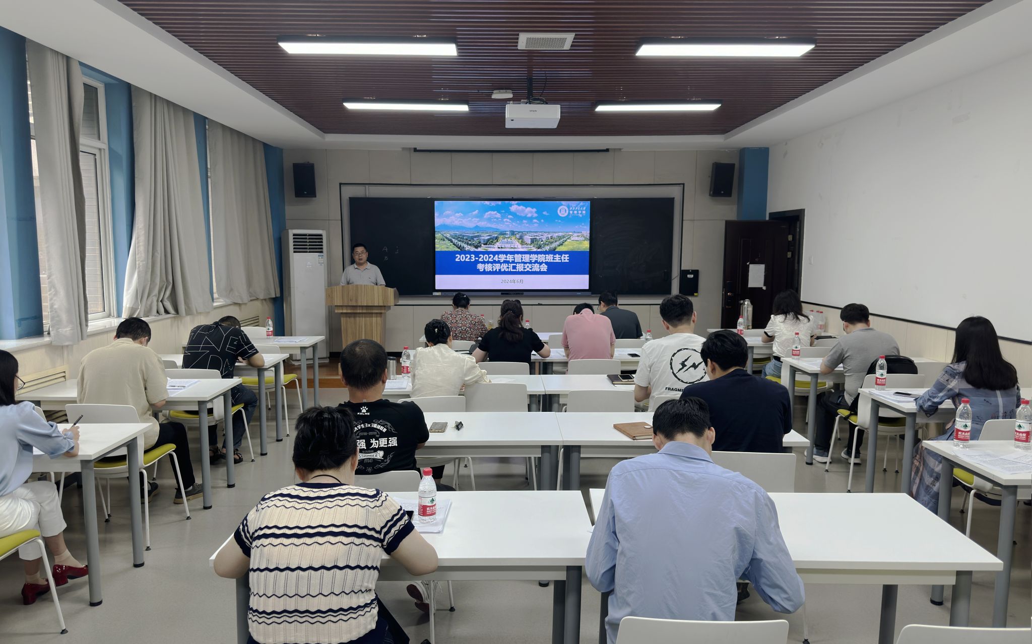 举行2023-2024学年班主任考核评优汇报交流会,学院党委书记张爽、副书记王海啸、院长助理白洁、各院系教师代表、全体辅导员以及全体本科生班主任参加会议。