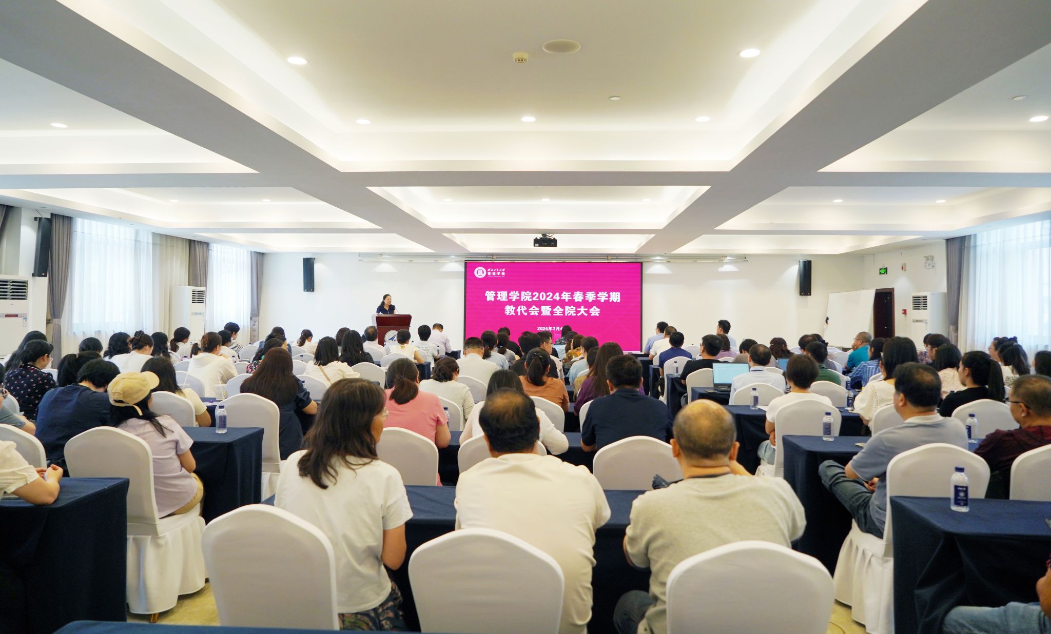 教职工大会上,副院长贾明、陈琳、郭云涛根据各自分管工作,分别就商科提升计划和学位论文开题、本科生毕业材料归档、专业学位招生和高水平研究生竞赛等事宜进行了说明,结合学校近期有关要求,通报了学院现阶段各项工作的推进落实情况,并就下一步工作的重点事项及举措进行安排部署。