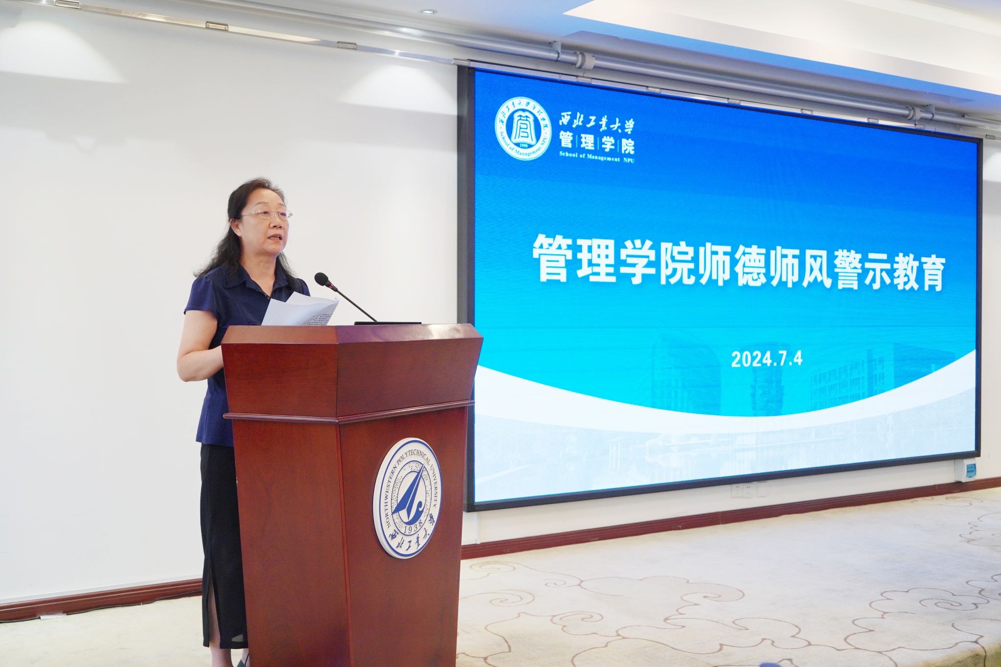 张爽带领大家进行了师德师风案例警示教育学习,对近期公布的高校教师失德违纪典型案例进行了通报,要求学院全体教职工要始终保持严的标准,以案为诫,进一步强化纪律意识,做到学纪、知纪、明纪、守纪。她强调,要切实增强遵守《新时代高校教师职业行为十项准则》的思想自觉和行动自觉,将师德师风内容内化于心、外化于行,迈好从教每一步。随后,就假期值班值守职责,校园安全稳定等工作进行了具体部署。