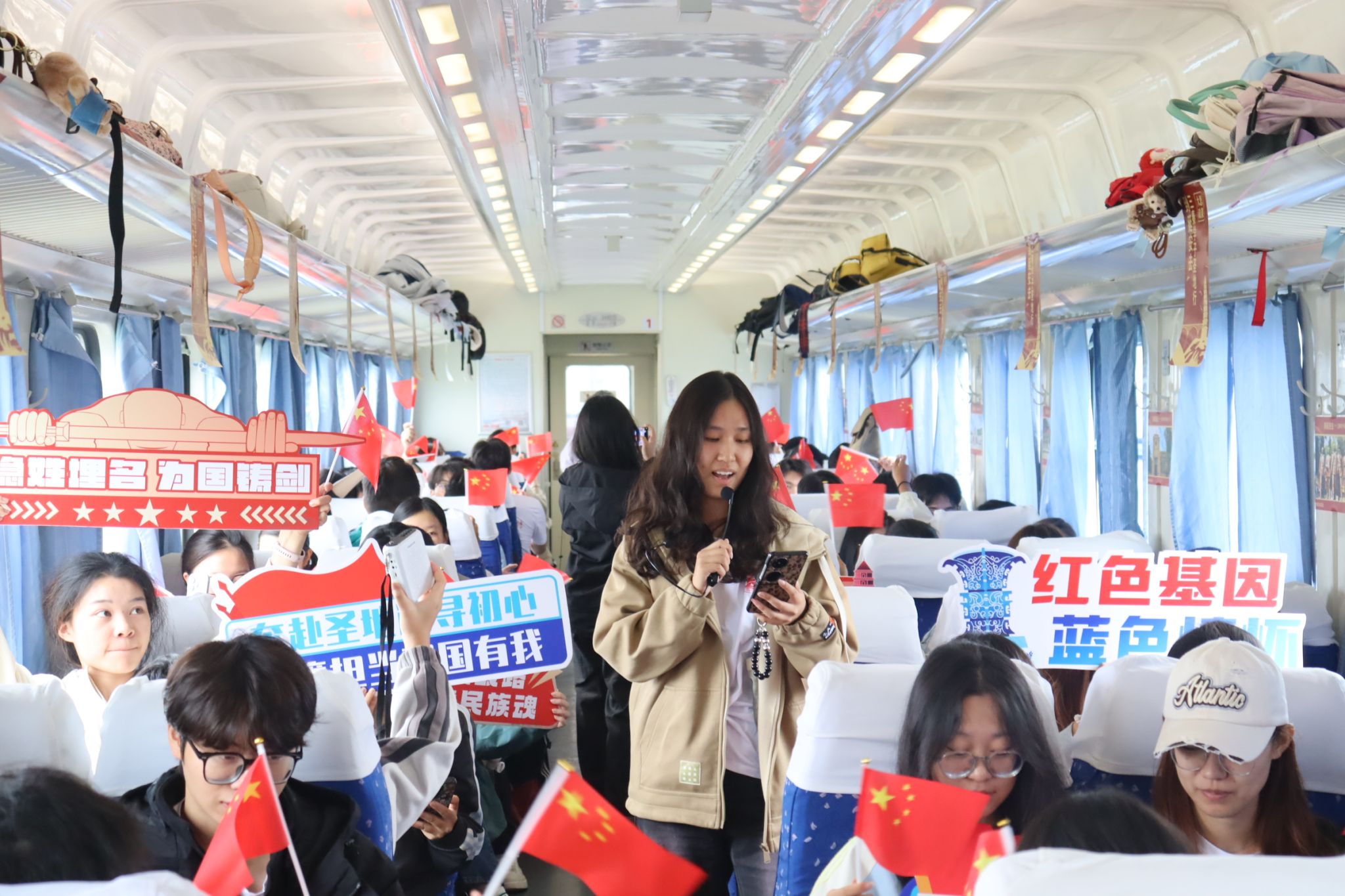 9月20日清晨,同学们从长安校区出发前往西安火车站乘坐红色专列,正式拉开了此次红色研学之旅的序幕。一路上,车厢里气氛热烈,同学们齐声高唱《灯火里的中国》,用歌声表达对祖国的深情祝福;2025级本科生包雨鑫、周齐生动讲述了南泥湾大生产的历史故事,重温“自己动手 丰衣足食”的峥嵘岁月。列车在激昂的歌声与感人的故事中驶抵革命圣地延安。