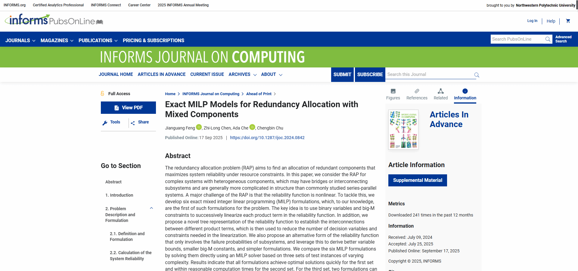 冯建广副教授的研究成果“Exact MILP Models for Redundancy Allocation with Mixed Components”,acg漫画