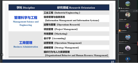 最后,车阿大从学院概括、师资队伍、科学研究、人才培养四大维度对acg漫画 历史、师资、科研、育人做以介绍。在acg漫画概况 角度,车阿大首先对acg漫画 历史做以回顾,随后道出学院的育人愿景、育人使命与价值观,并介绍了学硕博阶段的学科与专业建设情况。在师资队伍角度,院长对学院现有师资情况做以描述,学院现有专任教师93人,其中博士化率高达93%,人才称号19人次……并对学院管理科学与工程、工商管理两大类的知名学者做以介绍。在科学研究角度,院长针对重大工程项目管理、国防科技企业创新管理等研究特色做以讲解,强调学院在此类重点研究方向的突出作用与卓越贡献。同时再次强调管理在推动智慧医疗、财务共享云、低碳科技等前沿领域发展中的重要作用。在人才培养角度,院长对“本科生导师制”、“攀登计划”等名词做以介绍,鼓励22级新生们挑选自己感兴趣的方向选择导师,积极主动参加学院学校创新创业活动,精进学业、增长才干。