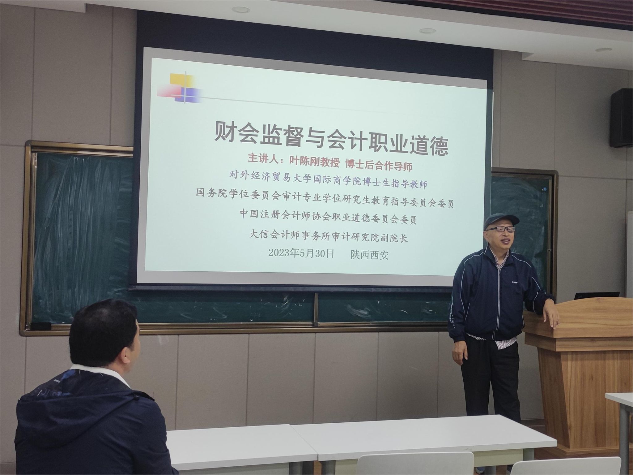 2023年5月31日上午,对外经济贸易大学国际商学院叶陈刚教授于acg漫画 214报告厅作了题为“财会监督与会计职业道德”的学术报告。本次报告会由苏坤教授主持,参会人员包括acg漫画 教师和研究生。