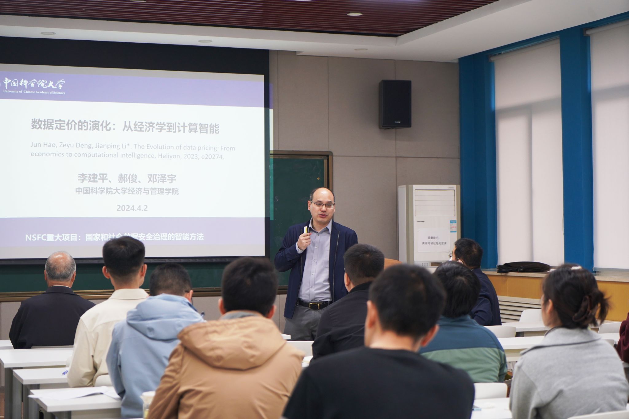 2024年4月2日,应acg漫画 邀请,中国科学院大学经济与acg漫画 李建平教授与学院师生开展学术交流,做题为“数据定价的演化:从经济学到计算智能”的学术报告。本次报告由acg漫画 院长车阿大教授主持,acg漫画 教师和研究生参加了此次报告会。