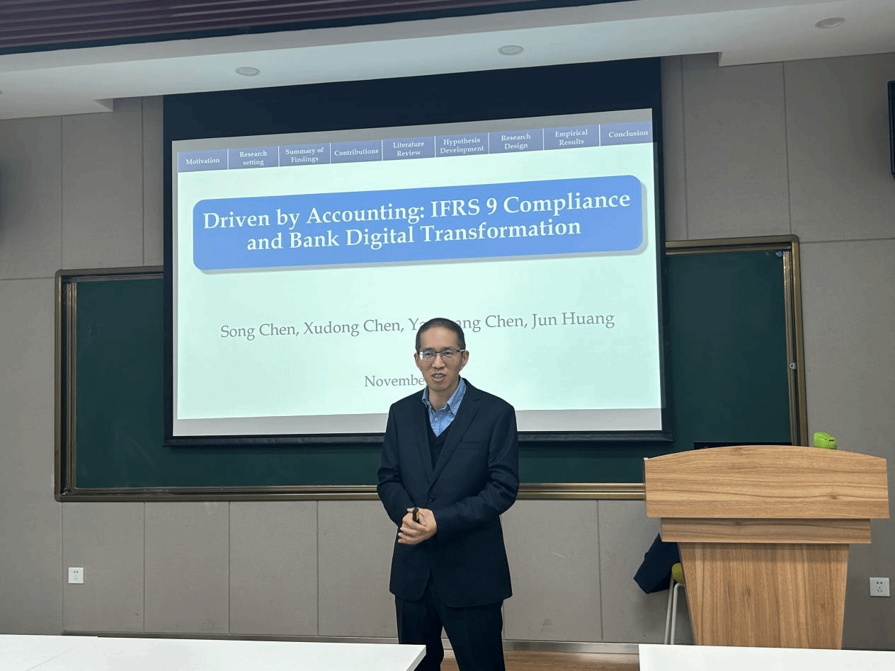 邀请,上海财经大学黄俊教授在长安校区学院楼214报告厅与学院师生展开学术交流,作题为“Driven by Accounting:IFRS 9 Compliance and Bank Digital Transformation(会计驱动:IFRS 9合规与银行数字化转型)”的学术报告。本次报告会由acg漫画