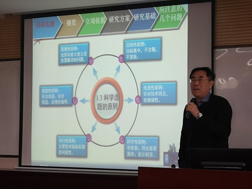 赵嵩正教授从选题、摘要、立项依据、研究方案、研究基础、应注意的问题等六个方面就如何撰写申请书进行了详细了介绍,并强调研究应围绕“做什么”、“为什么要做”、“如何做”、“能否做”等四个方面展开,为各位老师申请书的撰写提供了清晰的思路。