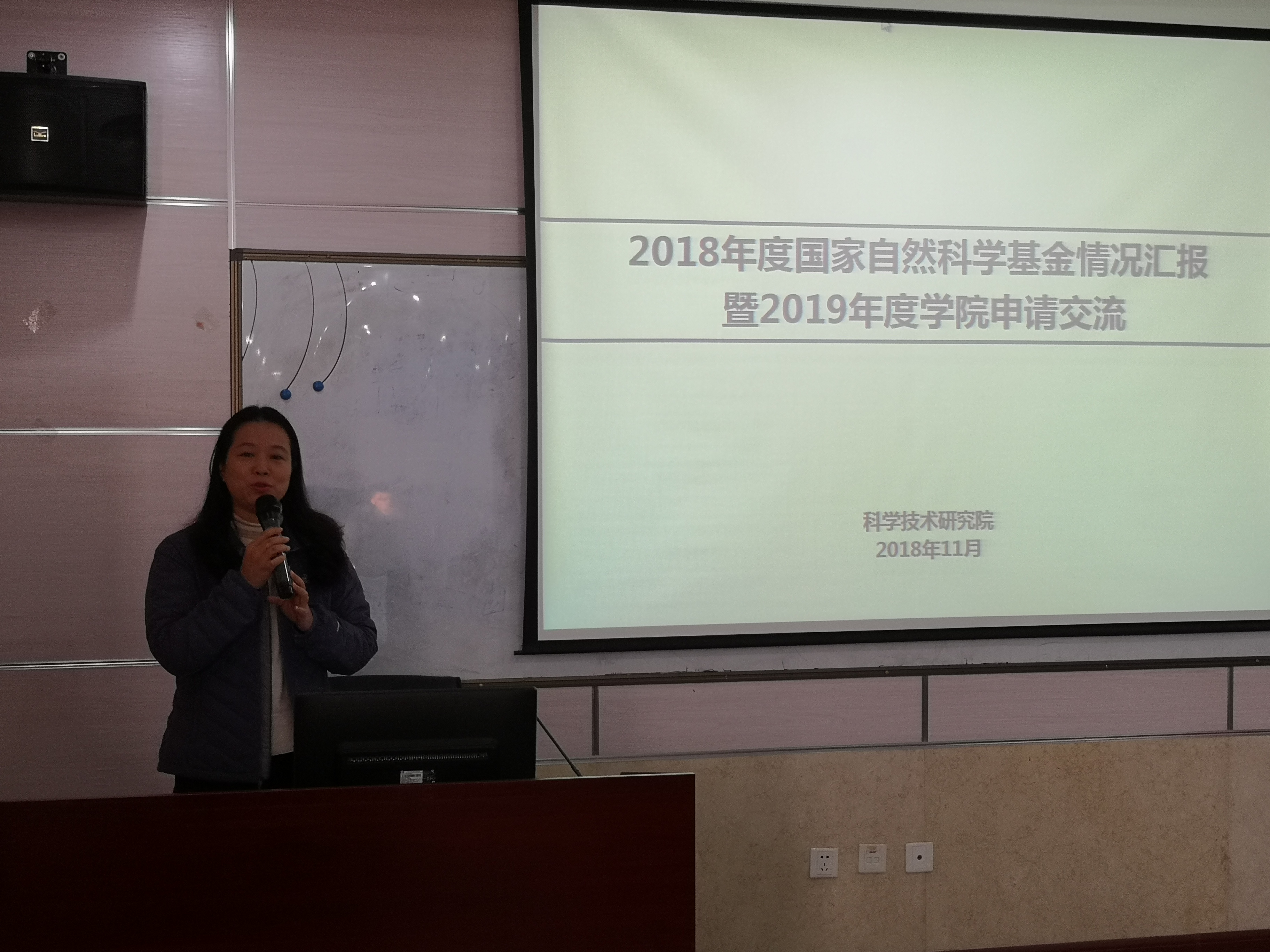 科研院李蕴副院长首先介绍了学校2018年国家自然科学基金的申报和资助情况,并详细解读了国家自然科学基金深化改革的要点、资助导向和2019年国家自然科学基金的新政策,以及国家自然科学基金项目分类和建议关注的项目类型。随后,李院长分析了近五年学校和兄弟高校国家社科基金立项情况,从总体指导思想、项目定位、项目类型、申报注意事项等4个项目系统介绍了国家社科基金项目,以及2019年国家社科基金申报校内工作安排。最后,李院长对学校层面哲学社会科学科研制度体系制定做了说明,并预祝学院老师2019年基金申报成功。