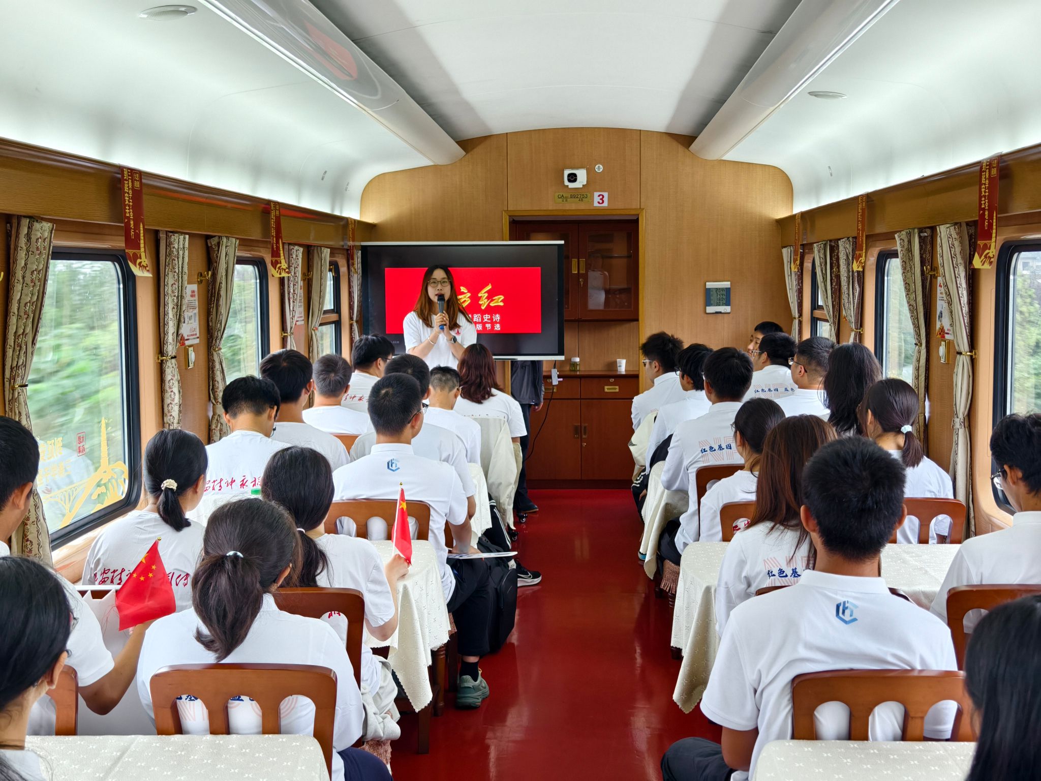 9月20日清晨,同学们从长安校区出发前往西安火车站乘坐红色专列,正式拉开了此次红色研学之旅的序幕。一路上,车厢里气氛热烈,同学们齐声高唱《灯火里的中国》,用歌声表达对祖国的深情祝福;2025级本科生包雨鑫、周齐生动讲述了南泥湾大生产的历史故事,重温“自己动手 丰衣足食”的峥嵘岁月。列车在激昂的歌声与感人的故事中驶抵革命圣地延安。