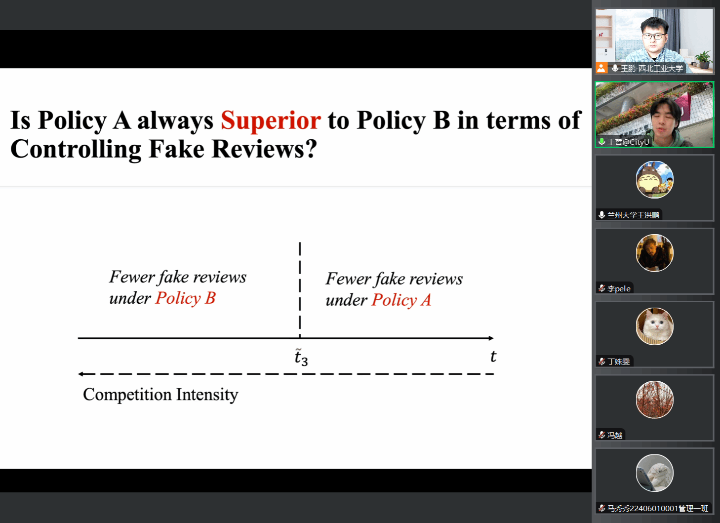 2024年11月29日,应acg漫画 邀请,香港城市大学信息系统系王哲助理教授线上为acg漫画 师生作题为《评论展示政策如何影响平台打击虚假评论的动机:一个博弈论的视角》的学术讲座,本次讲座为acg漫画 2024年海外系列讲座第30期,由王鹏副教授主持。