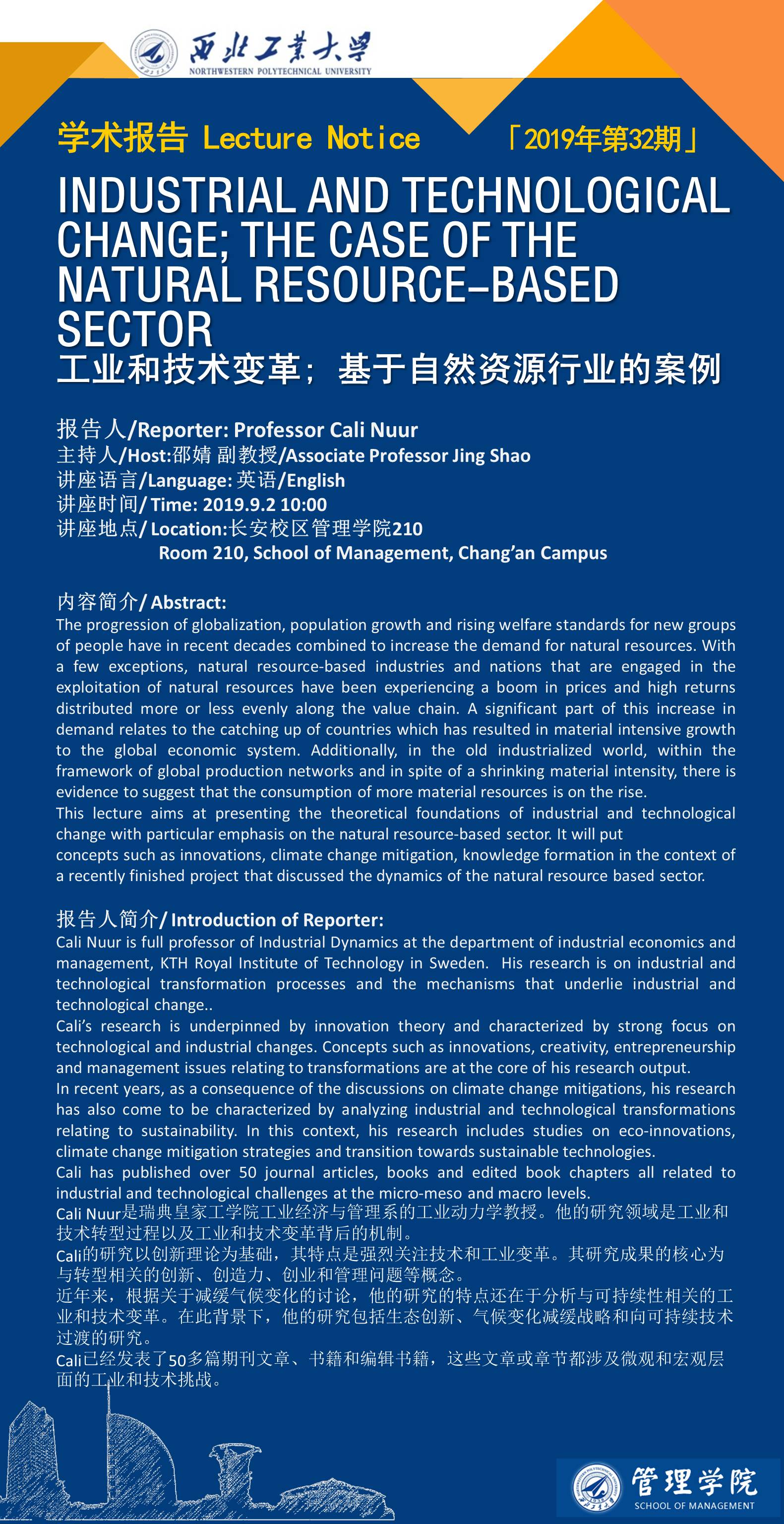 [学术报告]瑞典皇家工学院工业经济与管理系Cali Nuur教授来校作两场学术报告