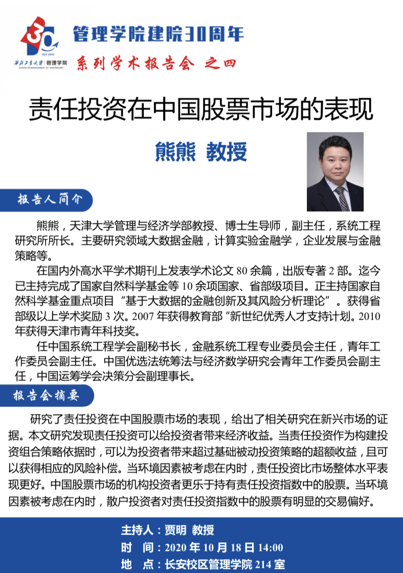 【acg漫画 建院30周年系列学术报告会之四】责任投资在中国股票市场的表现