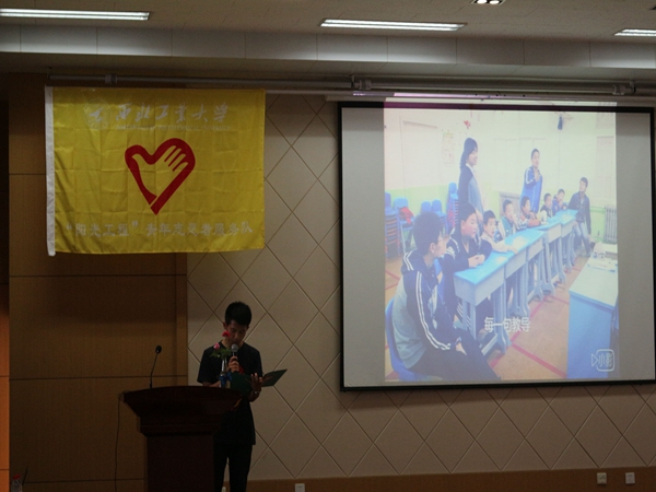 团委书记夏春雨老师上台讲话,她对本学期“阳光工程”在支教公益方面取得的进步表示了肯定,并表达了对“阳光工程”十八年来坚持公益不忘初心的感谢,以及对“阳光工程”在未来有更多更好表现的期待。演出最后,由各区志愿者代表组成的合唱团队共同演唱了歌曲《守护阳光》,音符美妙,旋律悠扬,如同志愿者们守护阳光的坚定的心。最后,进入颁奖环节。此次颁奖活动表彰了在日常出勤、教学能力及活动参与积极性等多个方面表现突出的45名优秀志愿者。十次活动,一次表彰,这不仅是对志愿者工作的肯定与赞扬,更是对他们坚持公益的一种支持与鼓励。