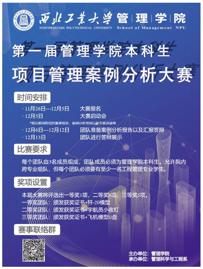 特主办了第一届本科生项目管理案例分析大赛,由管理科学与工程系承办。本次大赛自11月26日发布以来,得到了同学们的踊跃报名,一共有多达24支队伍报名参赛,经过激烈角逐,比赛于12月13日顺利落下帷幕。