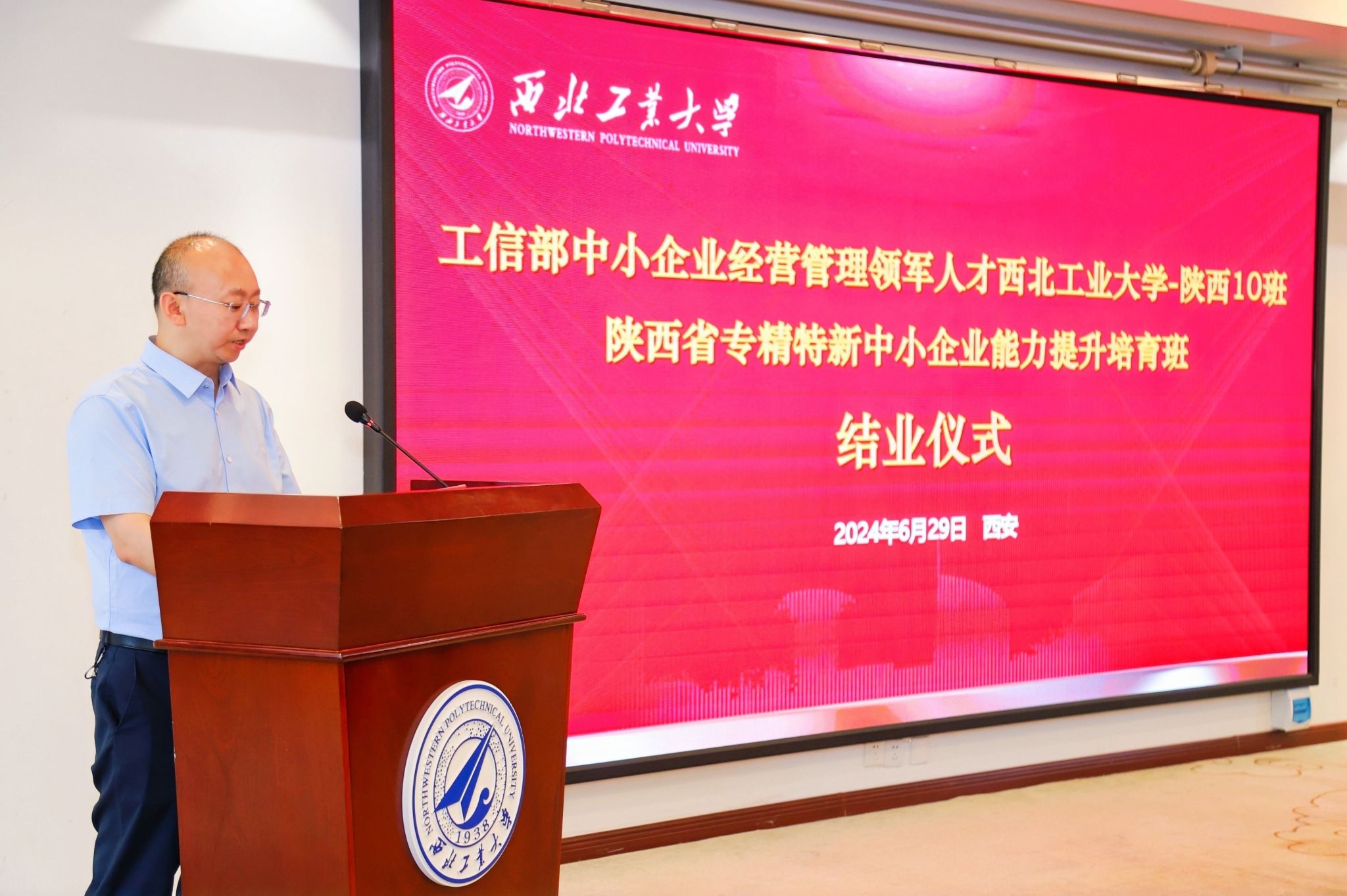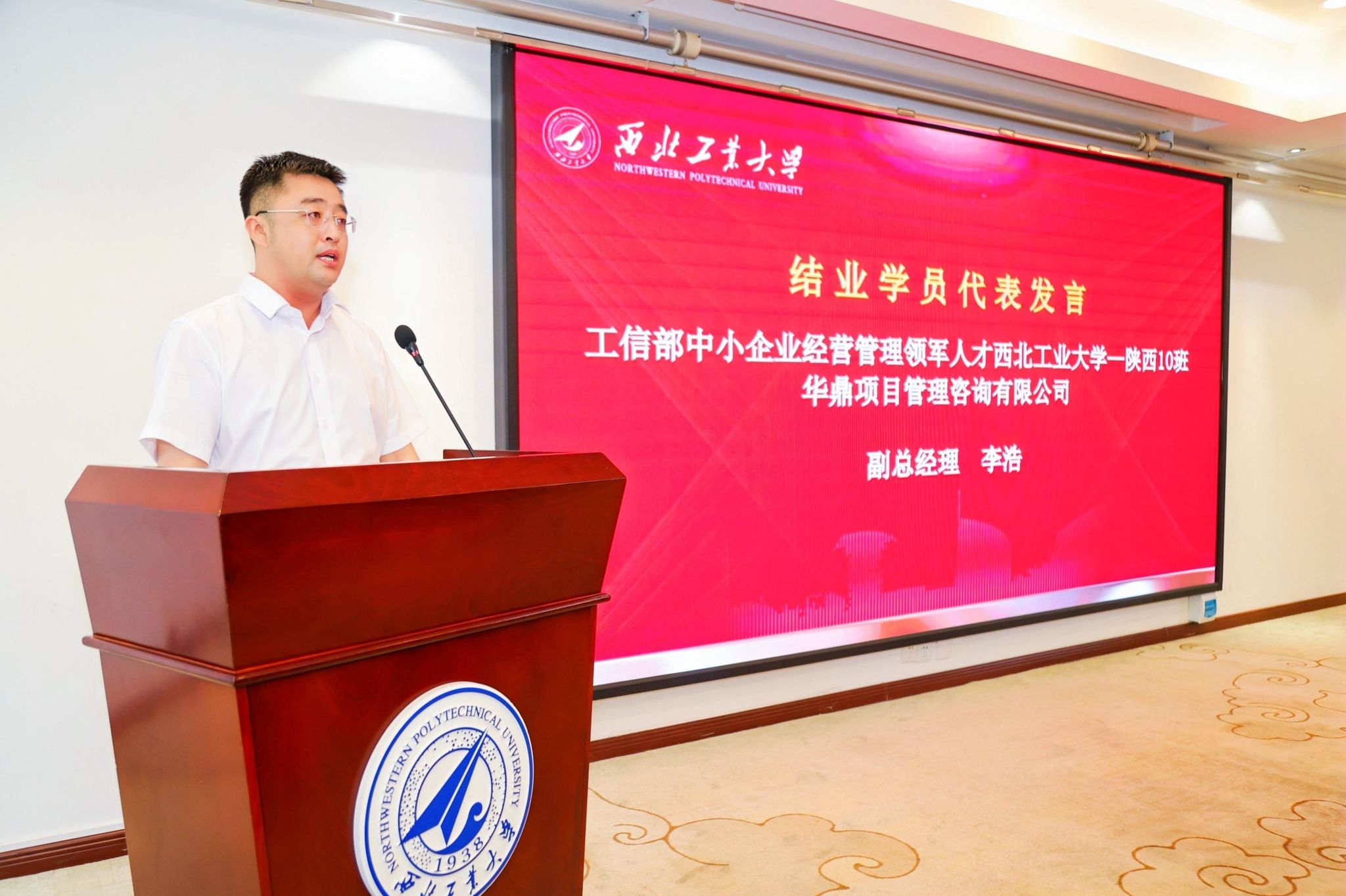 表示衷心的感谢,向全体学员的顺利结业表示热烈的祝贺。他说到:“国家高度关注和重视民营经济中小企业发展,心系产业链供应链安全稳定。陕西省委、省政府始终把发展制造业和支持民营经济中小企业摆在突出位置,省工信厅非常重视中小企业企业家队伍建,希望各位学员真正把学习的成果转化为促进企业发展的强大动力,一是要把本次培训结业当做新的起点;二是传承“永不毕业”传统;三是提高政治站位,树立家国情怀,共同成为新时期秦商精神的实践者与见证者。也希望西工大发挥高校教育资源丰富优势,继续发挥综合枢纽作用,打造出更多精品课程,助力我省中小企业高质量发展。”