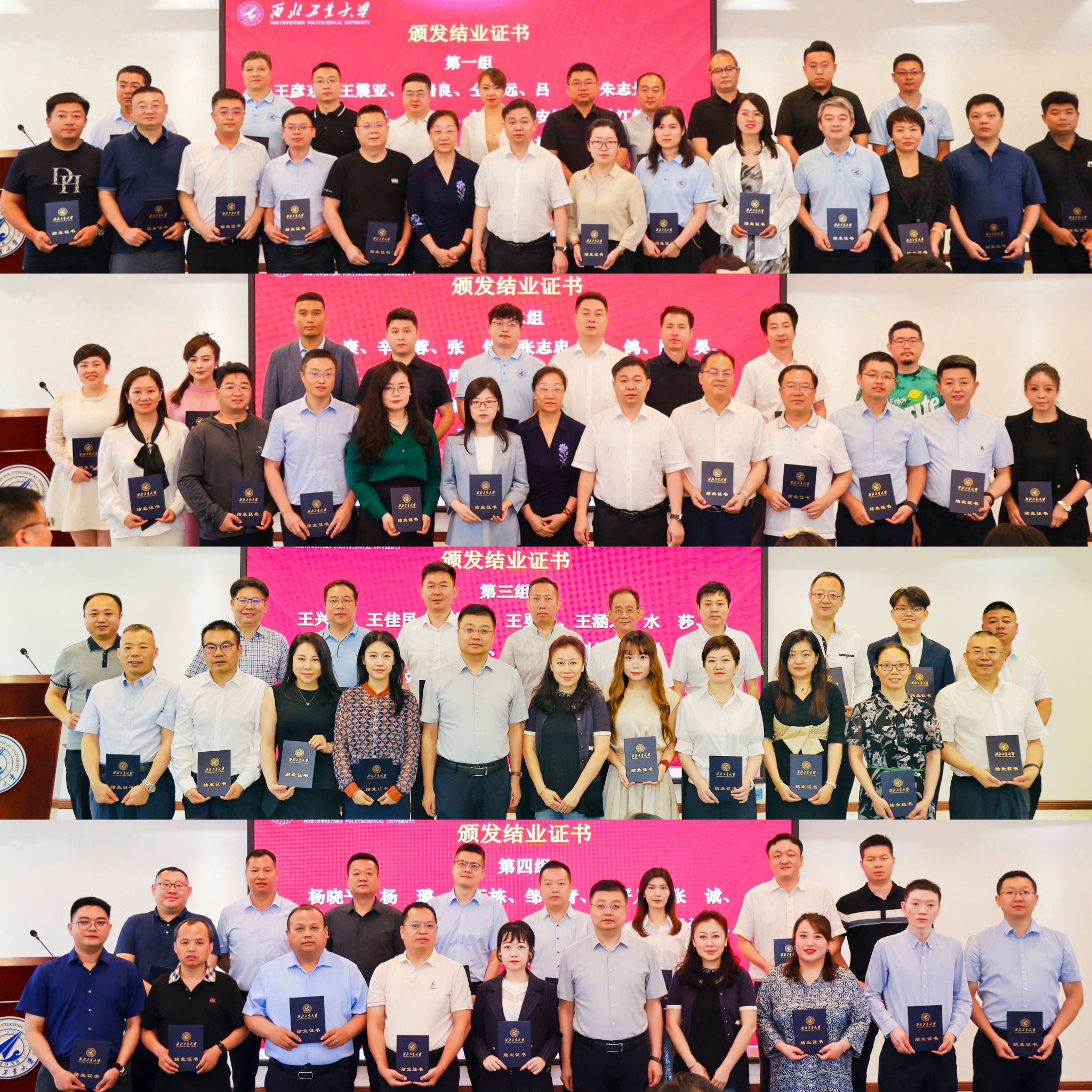 张爽书记,对外联络办公室徐伟侠副主任为结业学员颁发结业证书和荣誉奖牌。希望结业学员们发挥传帮带作用,继续为西工大企业家培育平台建设添砖加瓦。